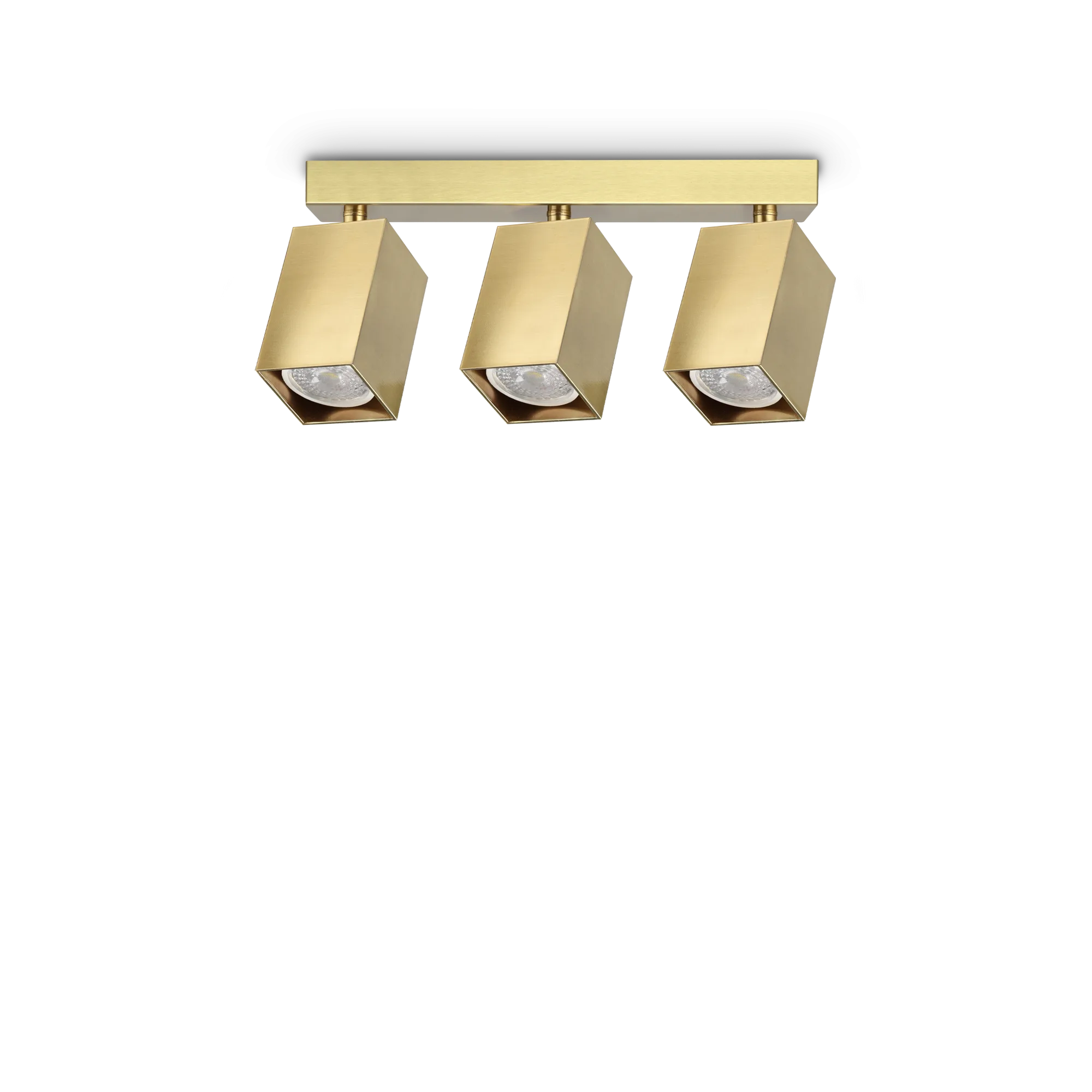 Το Ideal Lux DYNAMITE PL3 LINEAR SQUARE Brass είναι ένα σύγχρονο γραμμικό σποτ οροφής με τρεις ανεξάρτητα ρυθμιζόμενες κεφαλές, σχεδιασμένο για στοχευμένο και ευέλικτο φωτισμό σε μικρότερους ή πιο συγκεκριμένους χώρους.