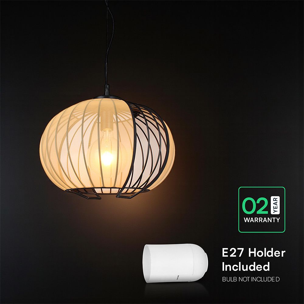 V-TAC – 24117 Κρεμαστό Φωτιστικό 1x E27 με Πλέγμα Φ400 Μαύρο Ματ & Μπεζ