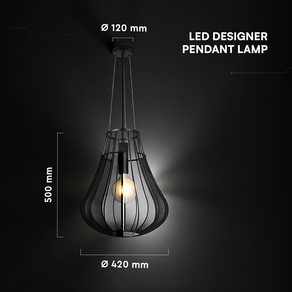 E27 Decorative Hanging Pendant (D420*H500mm) Matt Black Body V-TAC 24114VT