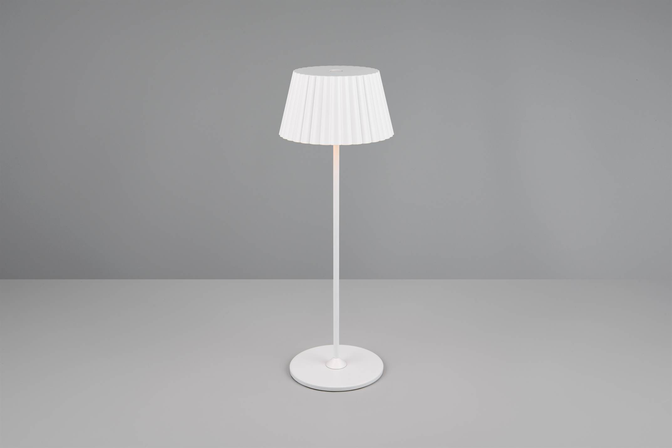 Η επαναφορτιζόμενη λάμπα SUAREZ LED κατασκευασμένη από μέταλλο υψηλής ποιότητας όχι μόνο παράγει ευχάριστο φως, αλλά είναι επίσης ένα πραγματικό μάτι. Η ένταση του φωτός μπορεί να ρυθμιστεί σε τρία στάδια χρησιμοποιώντας το ροοστάτη αφής στο επάνω μέρος της κεφαλής της λάμπας. Για να επαναφορτίσετε το φως, απλώς τοποθετήστε το στο σταθμό φόρτισης. Είτε σε εσωτερικό είτε σε εξωτερικό χώρο, μπορεί να χρησιμοποιηθεί οπουδήποτε χάρη στην προστασία IP44. Ιδανικός σύντροφος για μεγάλες καλοκαιρινές βραδιές στο αίθριο! Ο απλός σχεδιασμός του σε λευκό ματ δίνει διακοσμητικές πινελιές με έναν ευχάριστο χαρακτήρα. Το φωτιστικό διαθέτει επίσης σύγχρονη τεχνολογία LED, η οποία χαρακτηρίζεται από υψηλή ποιότητα φωτισμού και ενεργειακή απόδοση. Σε σύγκριση με τις συμβατικές πηγές φωτός αλογόνου, μπορεί να εξοικονομηθεί έως και το 80% του ενεργειακού κόστους. Με τις πηγές φωτός LED, επωφεληθείτε επίσης από τη μεγάλη διάρκεια ζωής και τη χαμηλή παραγωγή θερμότητας προστατεύοντας παράλληλα το περιβάλλον.