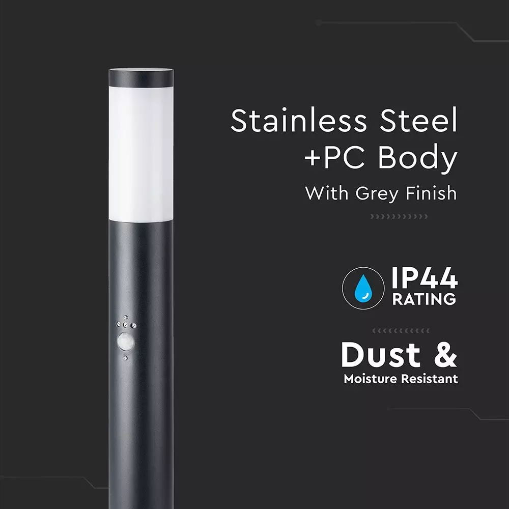 Επιδαπέδιο φωτιστικό κήπου E27 IP44 Stainless + PC με Μαύρο σώμα 110cm με ανιχνευτή κίνησης V-TAC – 8983
