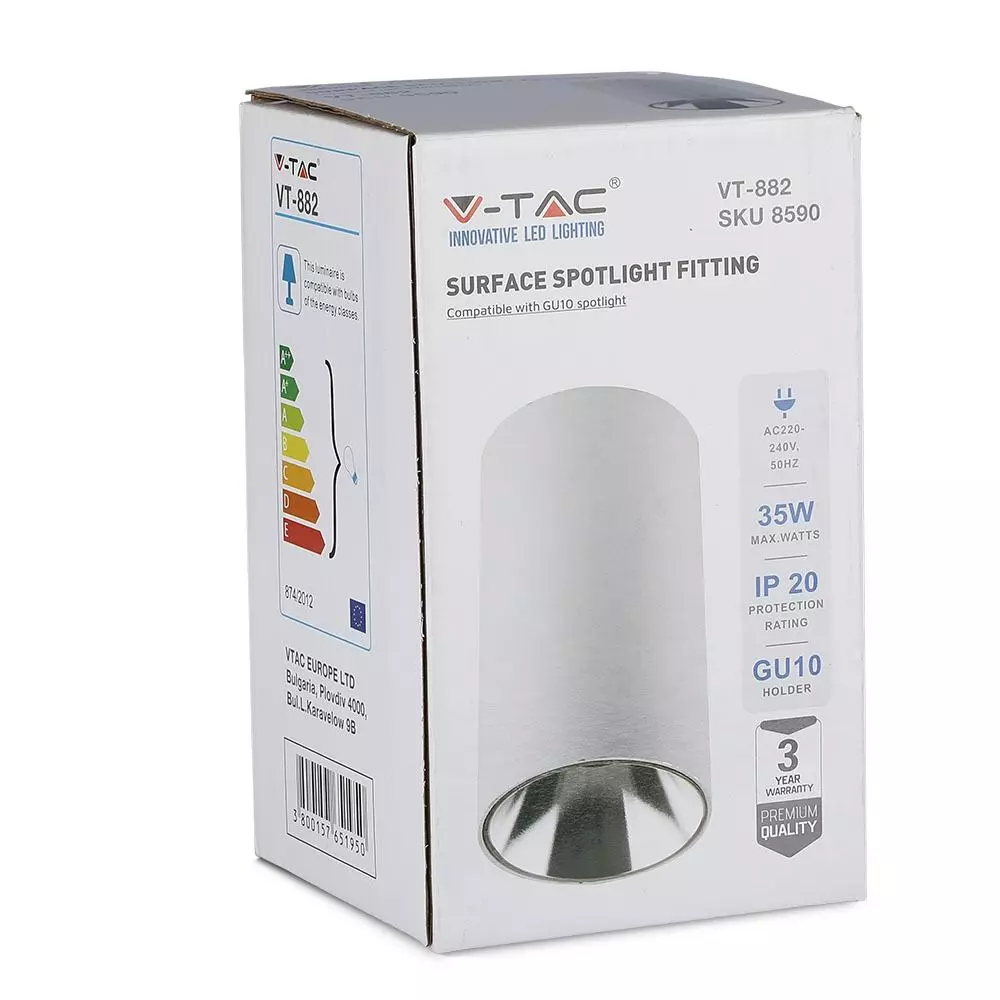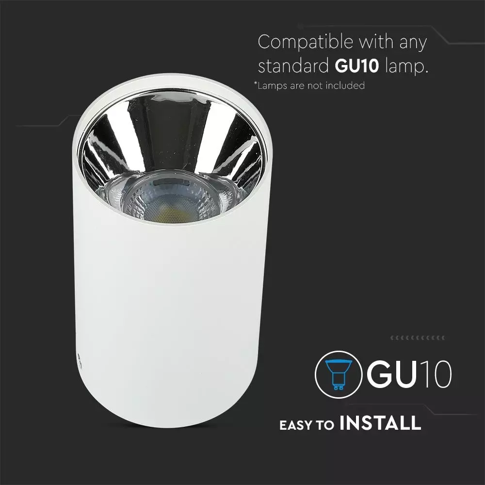 Επιφανειακό φωτιστικό Spot GU10 με κυλινδρικό λευκό σώμα και χρώμιο ανακλαστήρα V-TAC – 8590