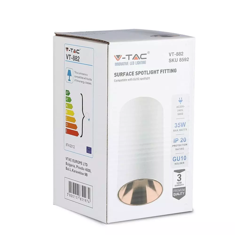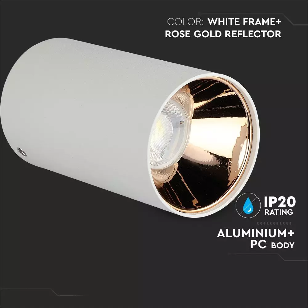Επιφανειακό φωτιστικό Spot GU10 με κυλινδρικό λευκό σώμα και ροζ χαλκό ανακλαστήρα V-TAC – 8592