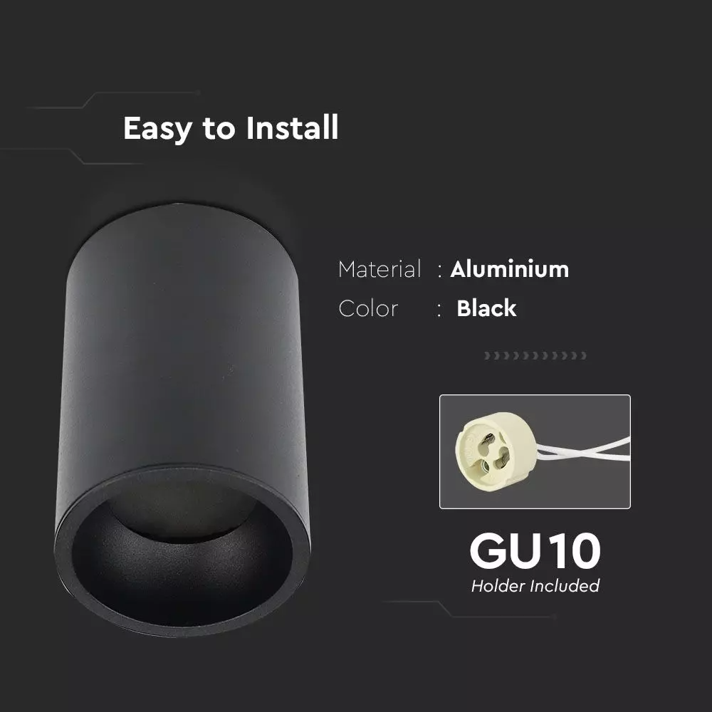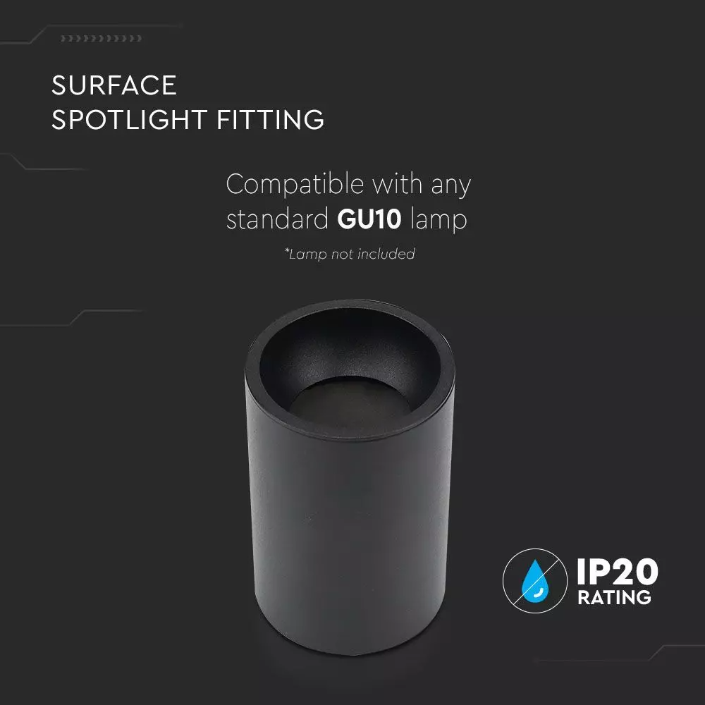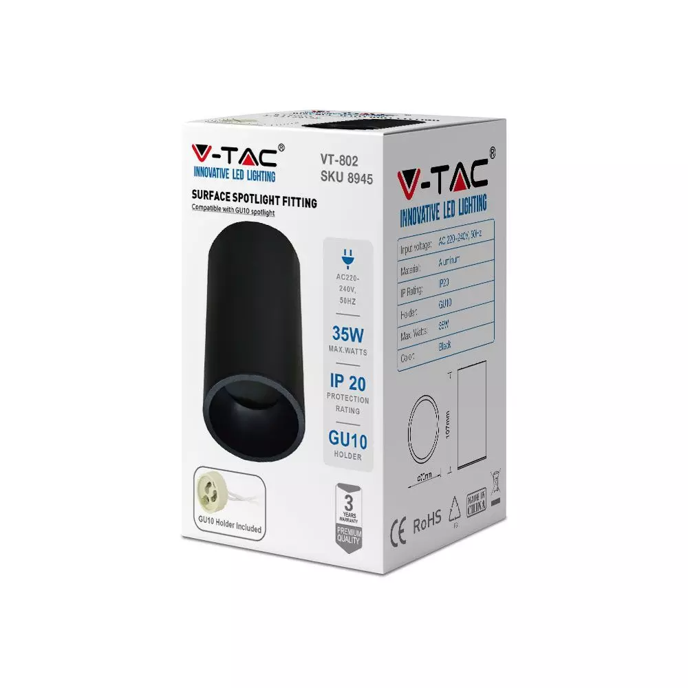 Επιφανειακό φωτιστικό Spot GU10 με κυλινδρικό μαύρο σώμα V-TAC – 8945