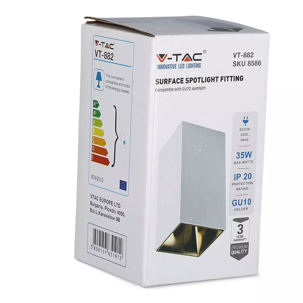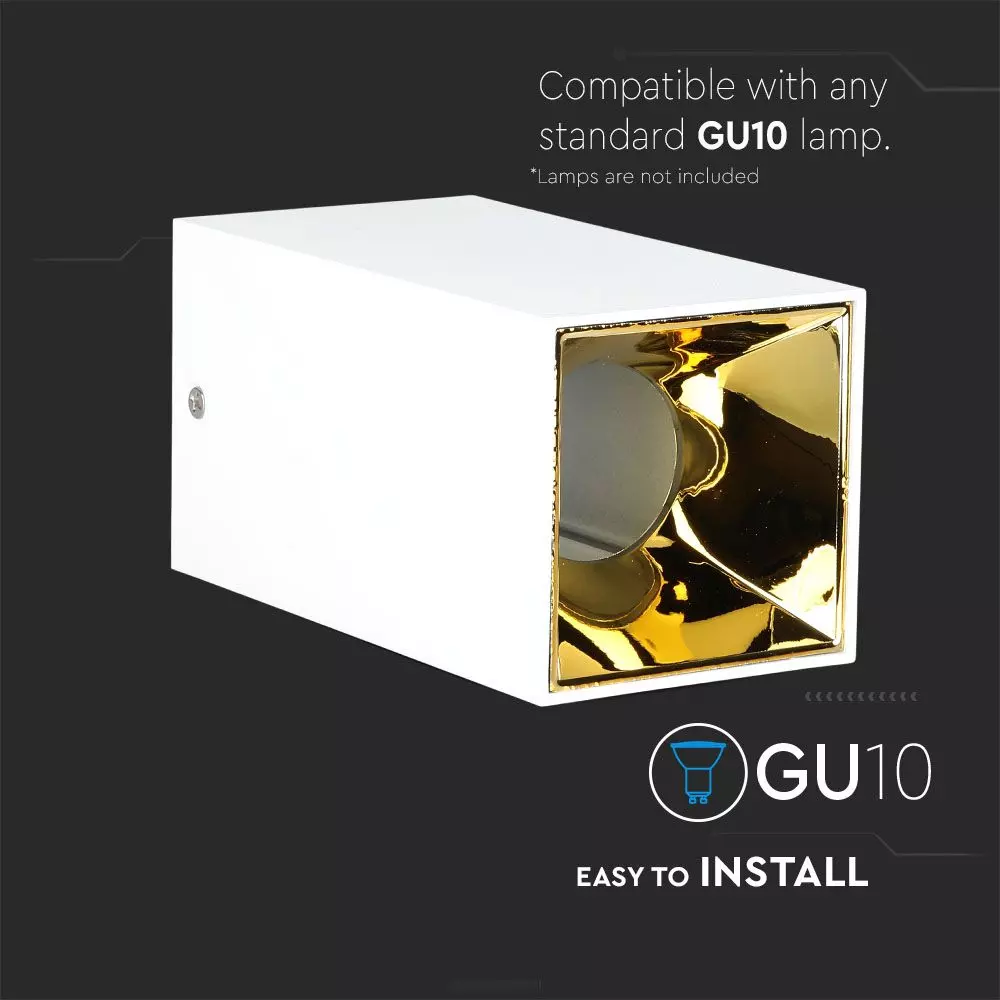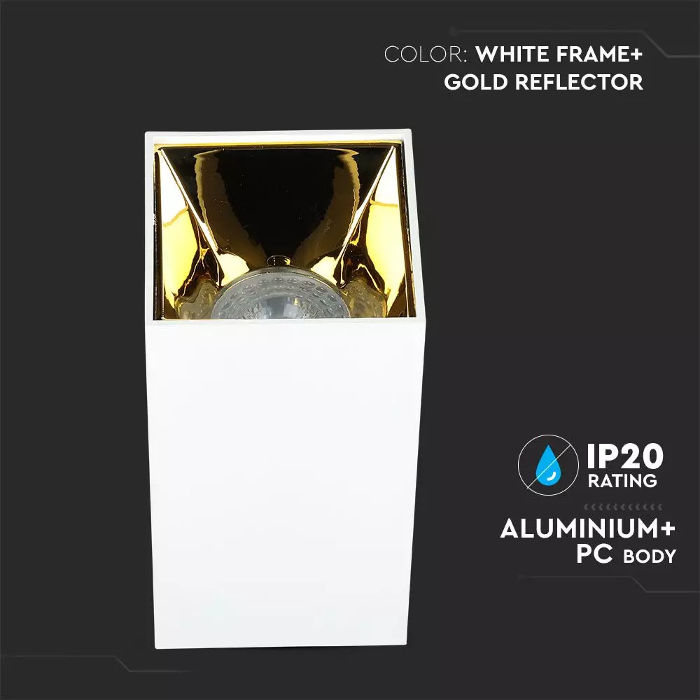Επιφανειακό φωτιστικό Spot GU10 τετράγωνο με λευκό σώμα και χρυσό ανακλαστήρα V-TAC – 8586