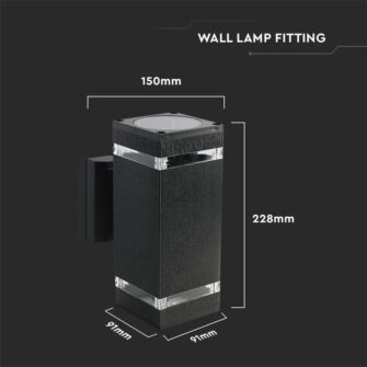 Επιτοίχιο φωτιστικό κήπου 2xE27 IP44 τετράγωνο με μαύρο σώμα V-TAC – 93574