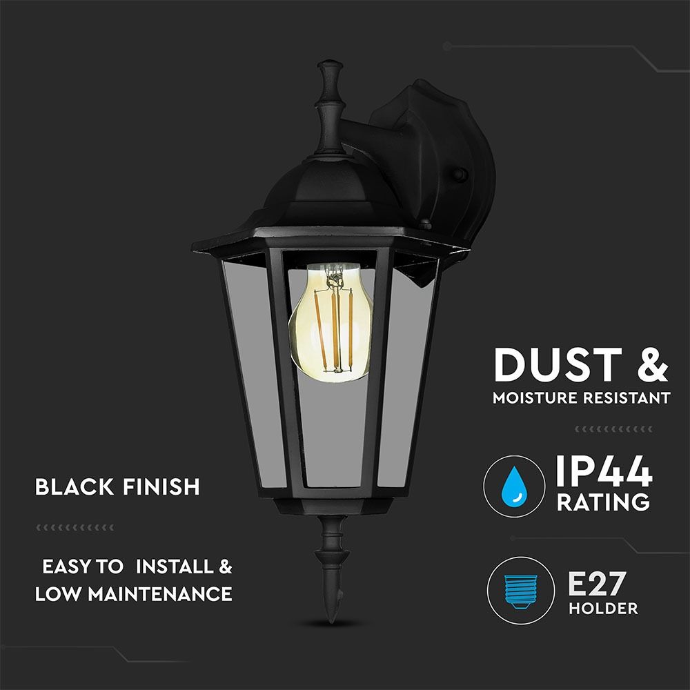 Επιτοίχιο Φωτιστικό Κήπου Απλίκα Φαναράκι προς τα Κάτω E27 IP44 Αλουμίνιο – Γυαλί Μαύρο V-TAC – 7068