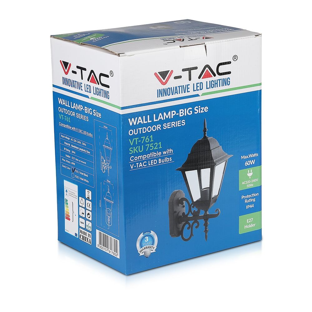Επιτοίχιο Φωτιστικό Κήπου Απλίκα Μεγάλο Φαναράκι E27 IP44 Αλουμίνιο – Γυαλί Μαύρο V-TAC – 7521