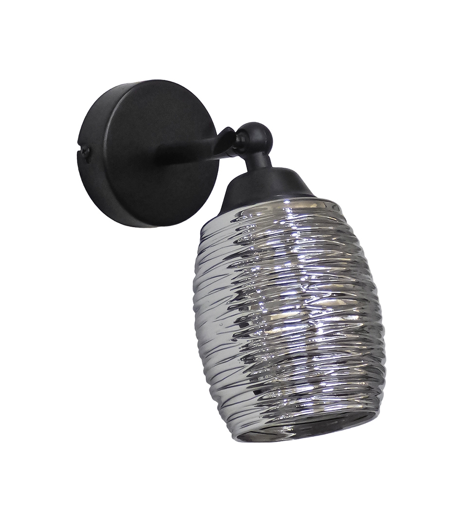 Επιτοίχιο φωτιστικό με μεταλλική βάση μαύρη ,κλειδί για να αλλάζει κατεύθυνση και γυαλί ανάγλυφο ,φυμέ BARREL/AP KEY BL-FUME ΑΠΛΙΚΑ ΓΥΑΛΙ