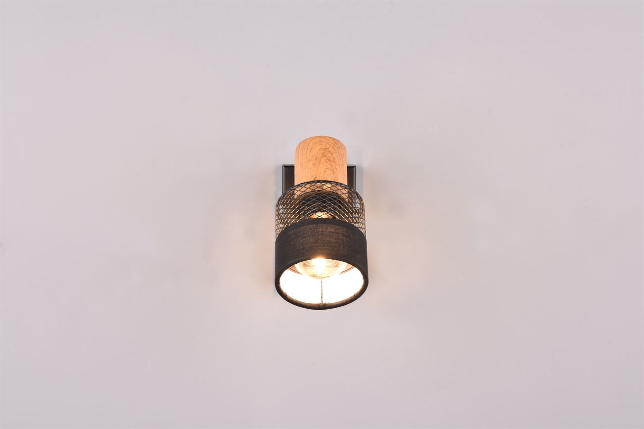 Επιτοίχιο Φωτιστικό NANDINI Trio Lighting 1x E14 Χρώματος Μαύρο Ματ & Ξύλο – 811700132