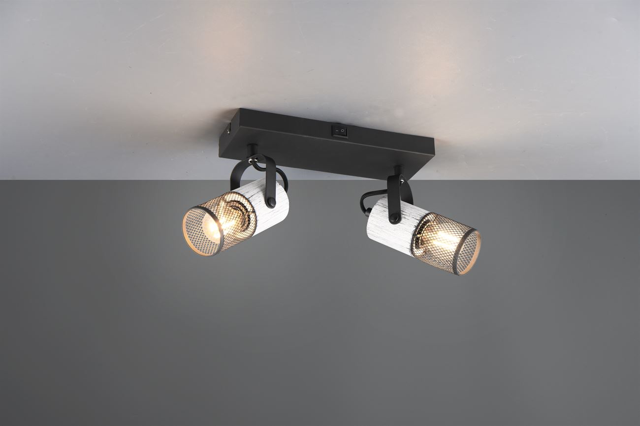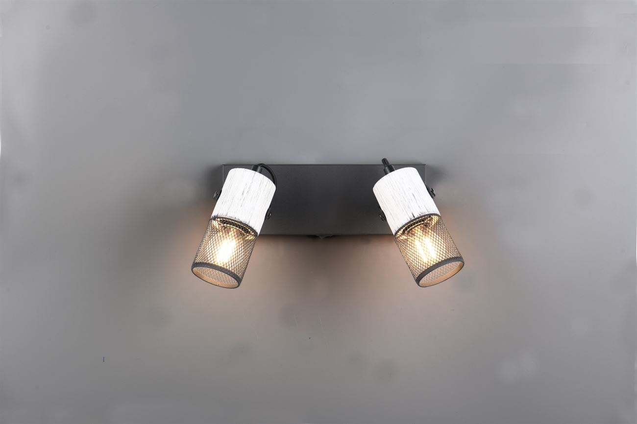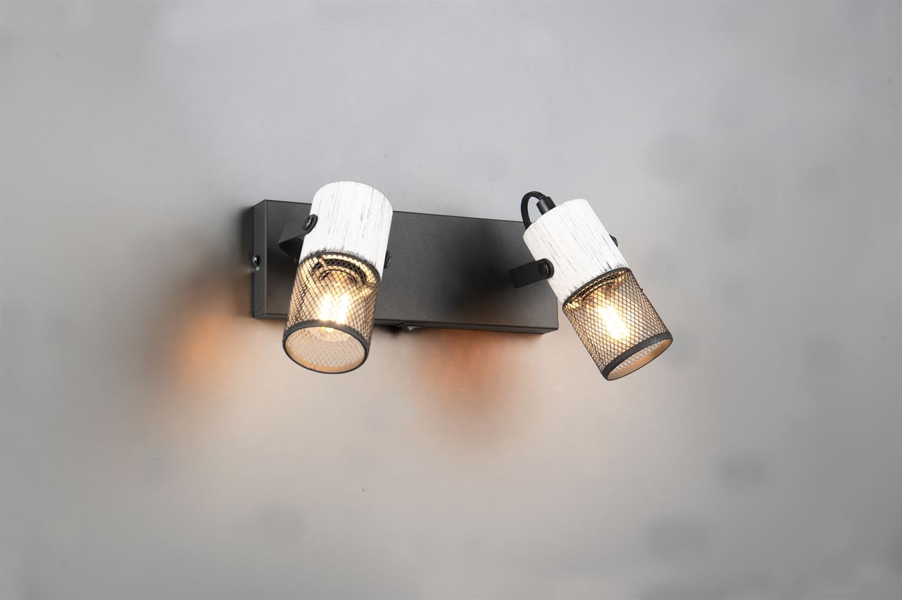 Επιτοίχιο Φωτιστικό Σποτ με Διακόπτη TOSH Trio Lighting 2x E14 Μαύρο-Άσπρο Ξύλο με Μεταλλικό Μαύρο Πλέγμα – 804370234