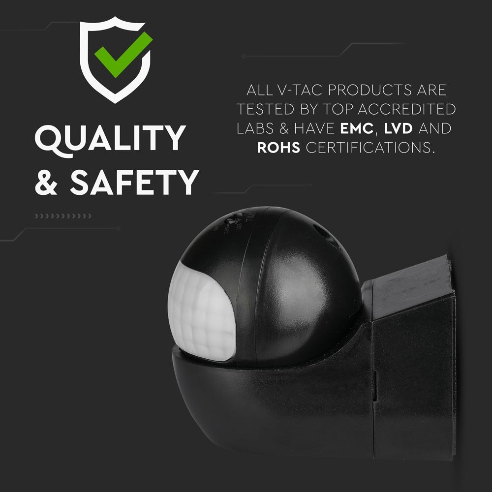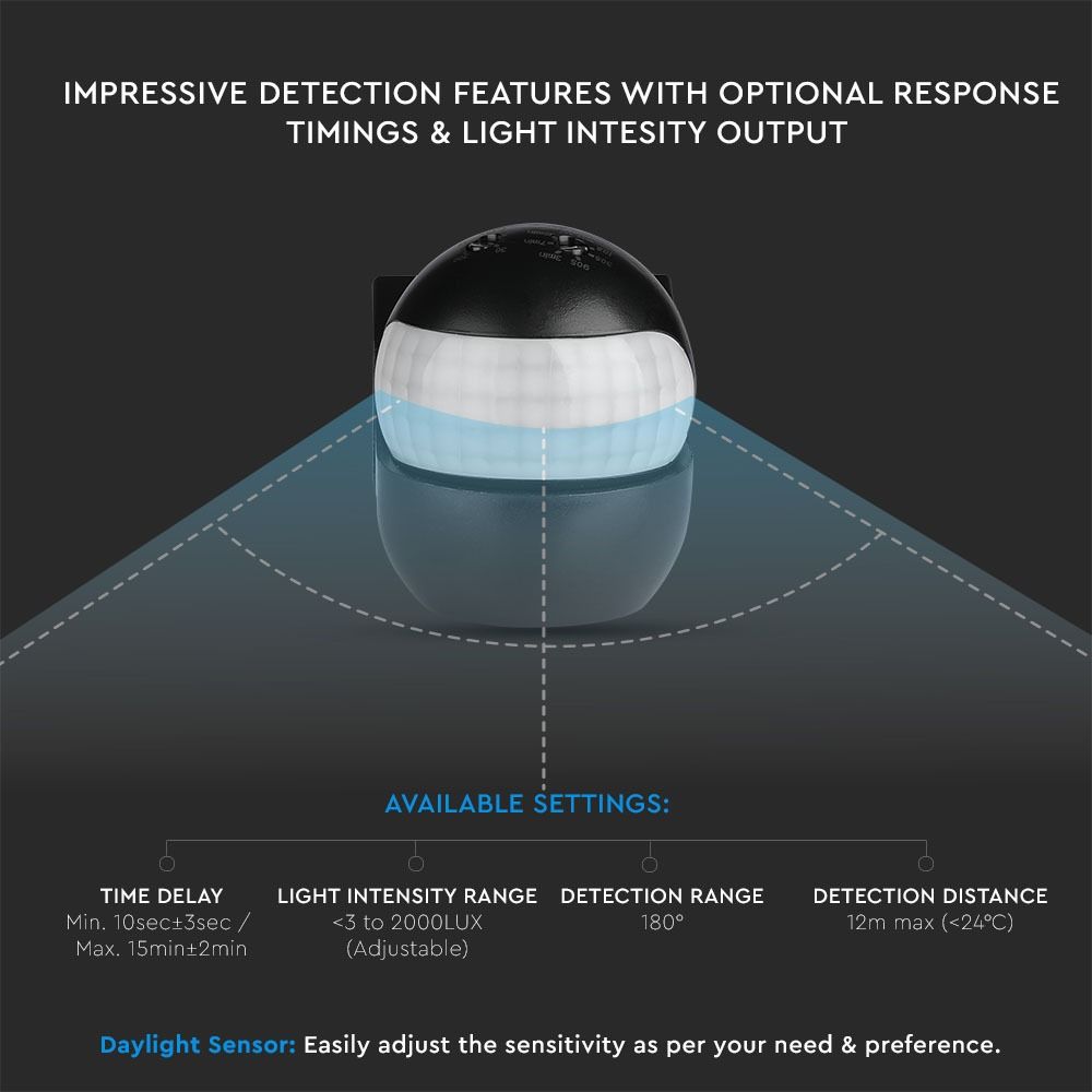 Επιτοίχιος Ανιχνευτής Κίνησης Υπερύθρων με Κινούμενη Κεφαλή Ρυθμιζόμενος Μαύρος V-TAC – 5089