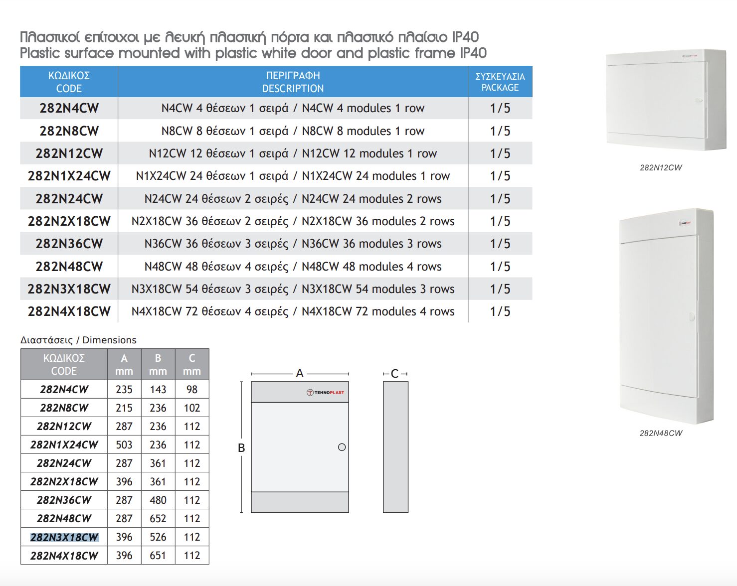 Επίτοιχος Πίανακας Πλαστικός 54 Θέσεων 3 Σειρών με Λευκή Πόρτα ACA – 282N3X18CW