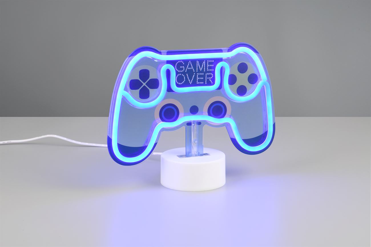 Το επιτραπέζιο φωτιστικό CONTROL LED είναι ένα πραγματικό διακοσμητικό highlight. Ο δροσερός σχεδιασμός του, εμπνευσμένος από ένα χειριστήριο, το καθιστά ιδανικό όχι μόνο για το σαλόνι, αλλά και για το παιδικό δωμάτιο ή το δωμάτιο παιχνιδιών, όπου σκορπίζει το καλό χιούμορ ως διακοσμητικό που τραβάει τα βλέμματα. Το φως διαθέτει διακόπτη on/off και λειτουργεί μέσω καλωδίου σύνδεσης USB. Εναλλακτικά, το φως είναι κατάλληλο και για λειτουργία με μπαταρία. Χάρη στον λευκό και μπλε πλαστικό σχεδιασμό του, το φως αντανακλάται βέλτιστα και το φωτιστικό συνδυάζεται εύκολα σε κάθε στυλ εσωτερικού χώρου. Το φωτιστικό διαθέτει επίσης σύγχρονη τεχνολογία LED, η οποία χαρακτηρίζεται από υψηλή ποιότητα φωτισμού και ενεργειακή απόδοση. Σε σύγκριση με τις συμβατικές πηγές φωτός αλογόνου, μπορεί να εξοικονομηθεί έως και το 80% του ενεργειακού κόστους. Με τις πηγές φωτός LED, επωφεληθείτε επίσης από τη μεγάλη διάρκεια ζωής και τη χαμηλή παραγωγή θερμότητας προστατεύοντας παράλληλα το περιβάλλον.