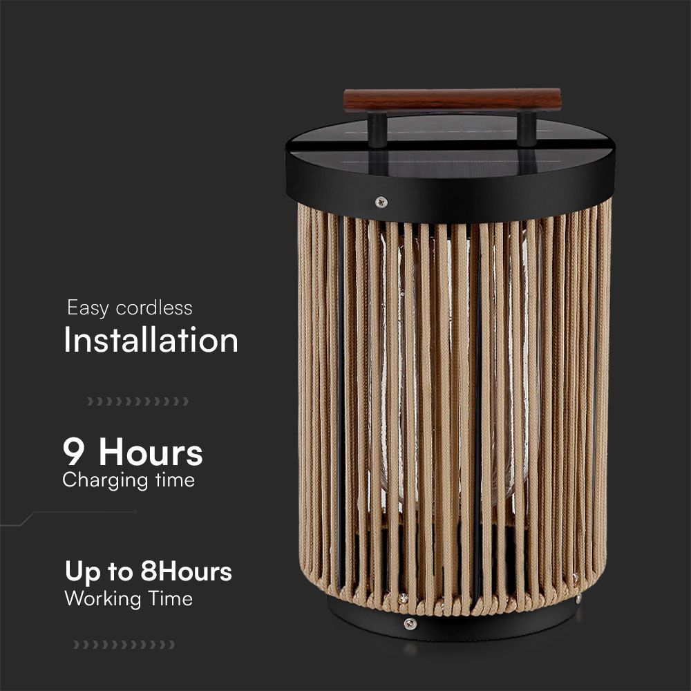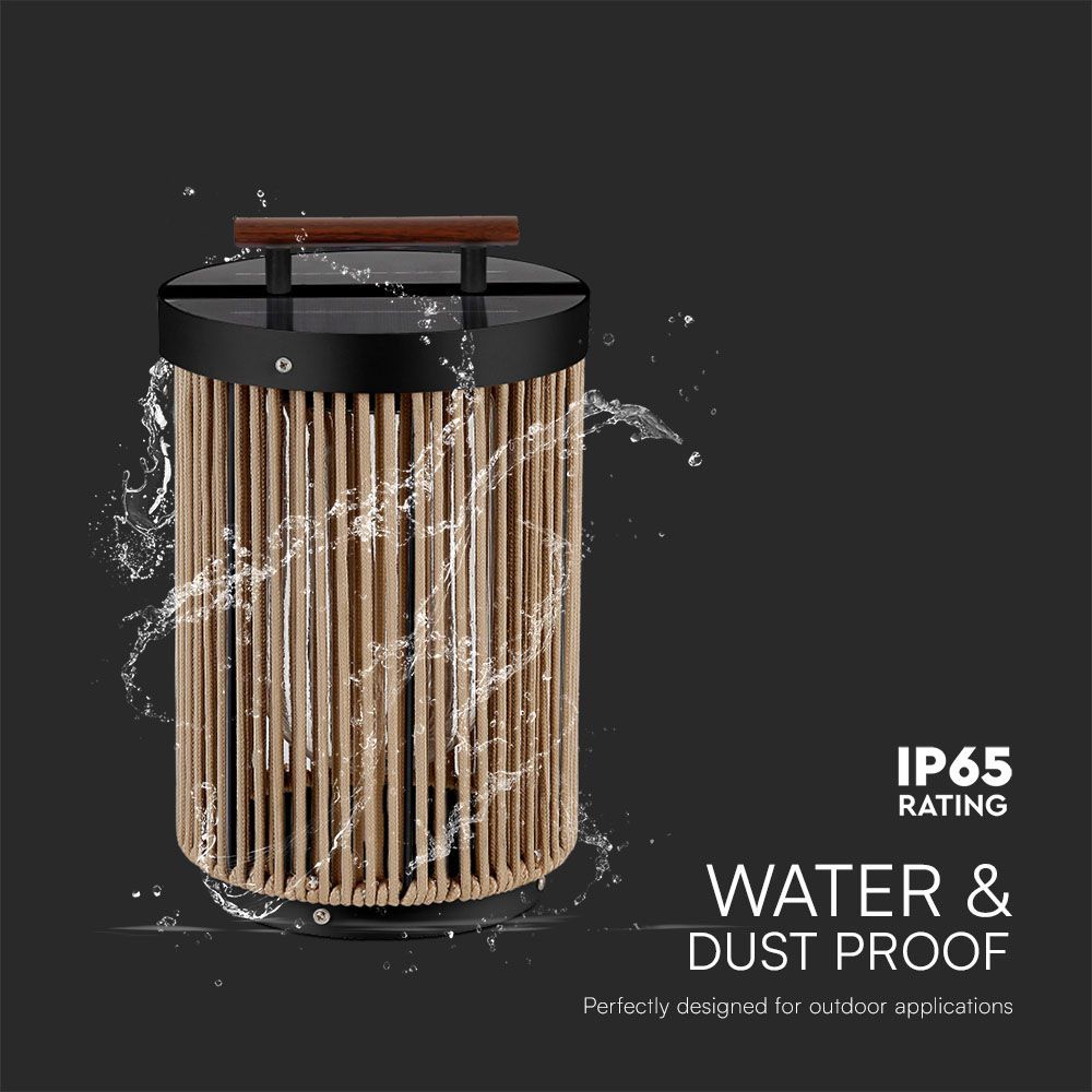 Επιτραπέζιο Φωτιστικό Κήπου LED 2.4W 3000K Ηλιακό IP65 με Ξύλο & Σχοινί V-TAC – 23349VT