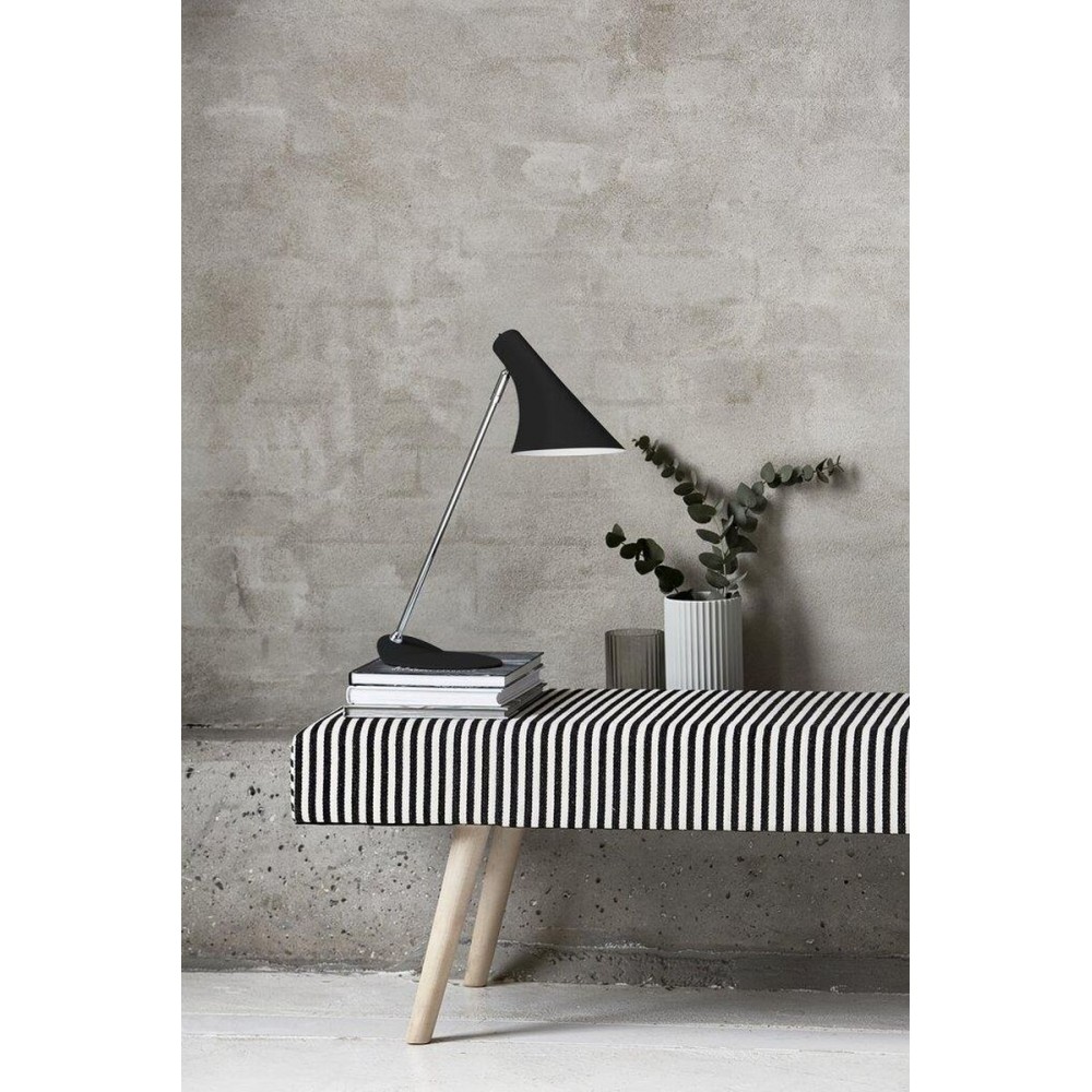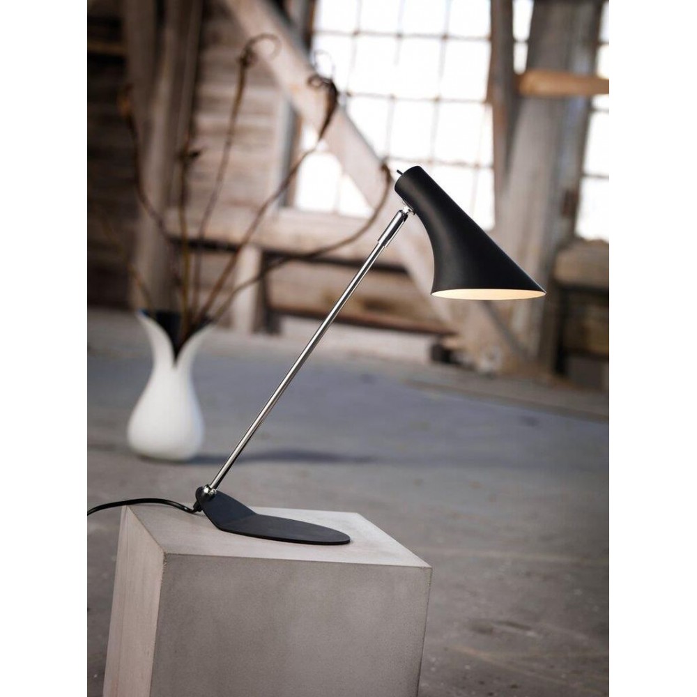 Επιτραπέζιο φωτιστικό μονόφωτο από μέταλλο σε χρώμα μαύρο. Διαθέτει καλώδιο σε χρώμα μαύρο και μήκος 200εκ. Δέχεται ένα λαμπτήρα LED Ε14 με ισχύ έως 12W.