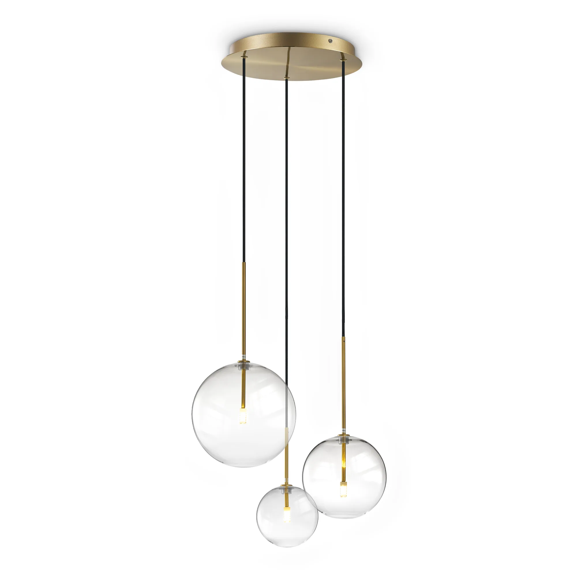 Το Ideal Lux EQUINOXE SP3 Brass είναι ένα κομψό κρεμαστό φωτιστικό οροφής που συνδυάζει μοντέρνα αισθητική με διαχρονική πολυτέλεια. Ανήκει στη σειρά Equinoxe της Ideal Lux, η οποία χαρακτηρίζεται από minimal μεταλλικές δομές και γυάλινες σφαίρες που δημιουργούν εντυπωσιακό φωτιστικό αποτέλεσμα.