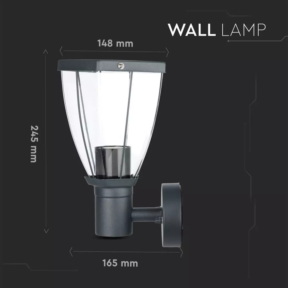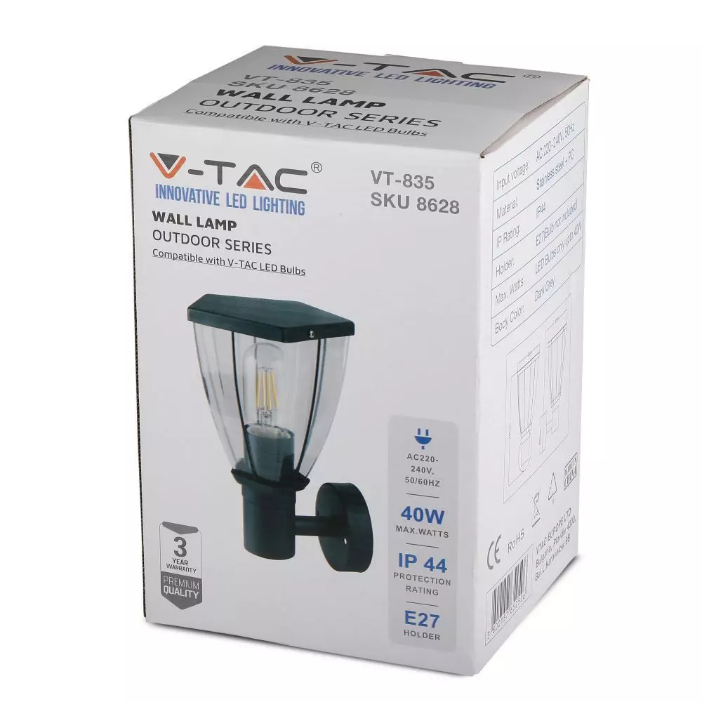Εξωτερικό επιτοίχιο φωτιστικό Ε27, μαύρο σώμα V-TAC – 8628
