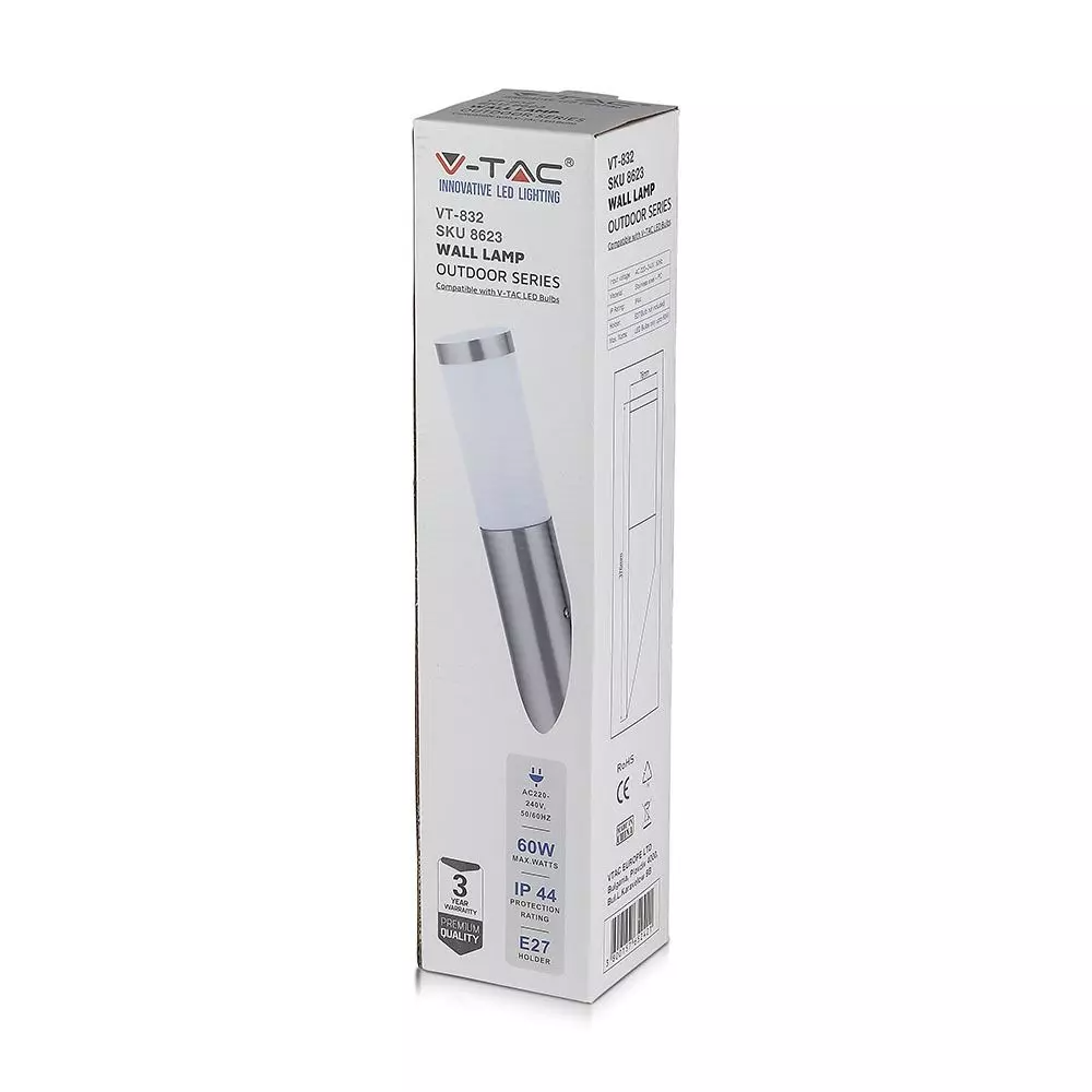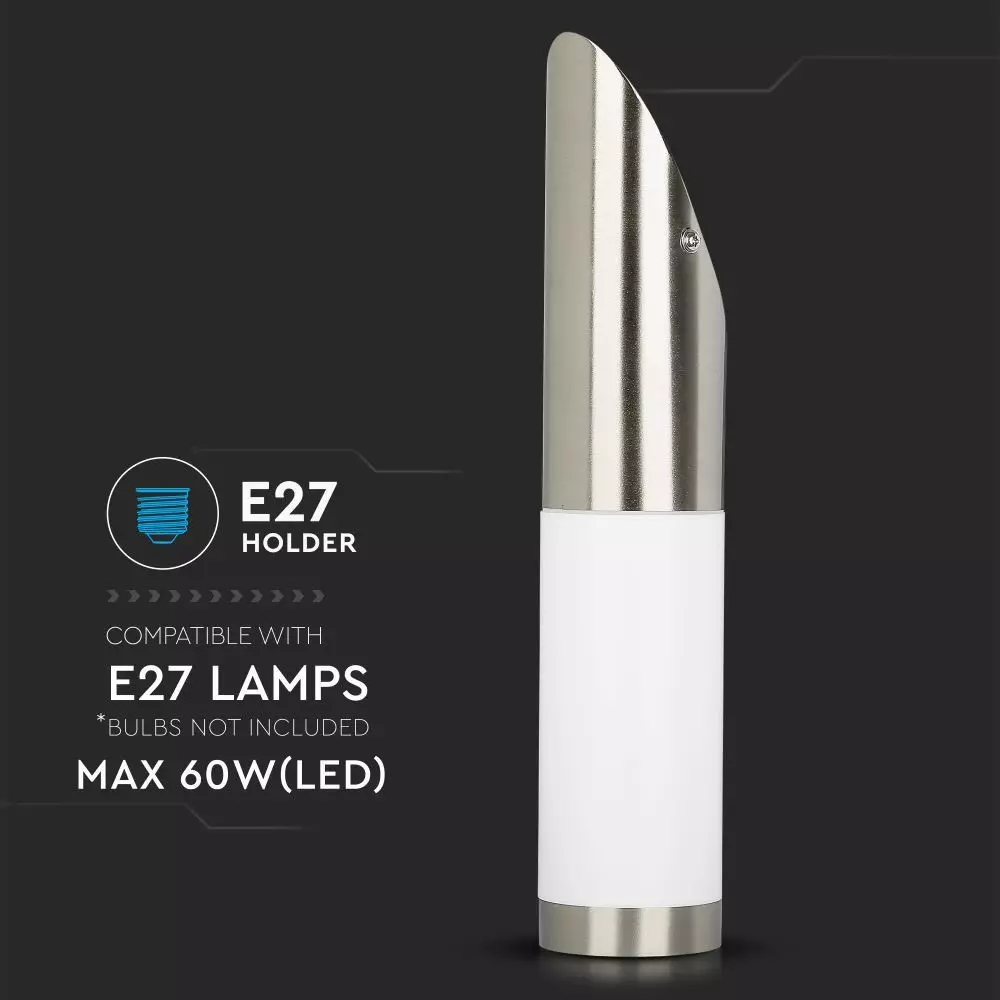 Εξωτερικό επιτοίχιο φωτιστικό Ε27, με διαγώνια κλίση και σώμα από ανοξείδωτο ατσάλι V-TAC – 8623