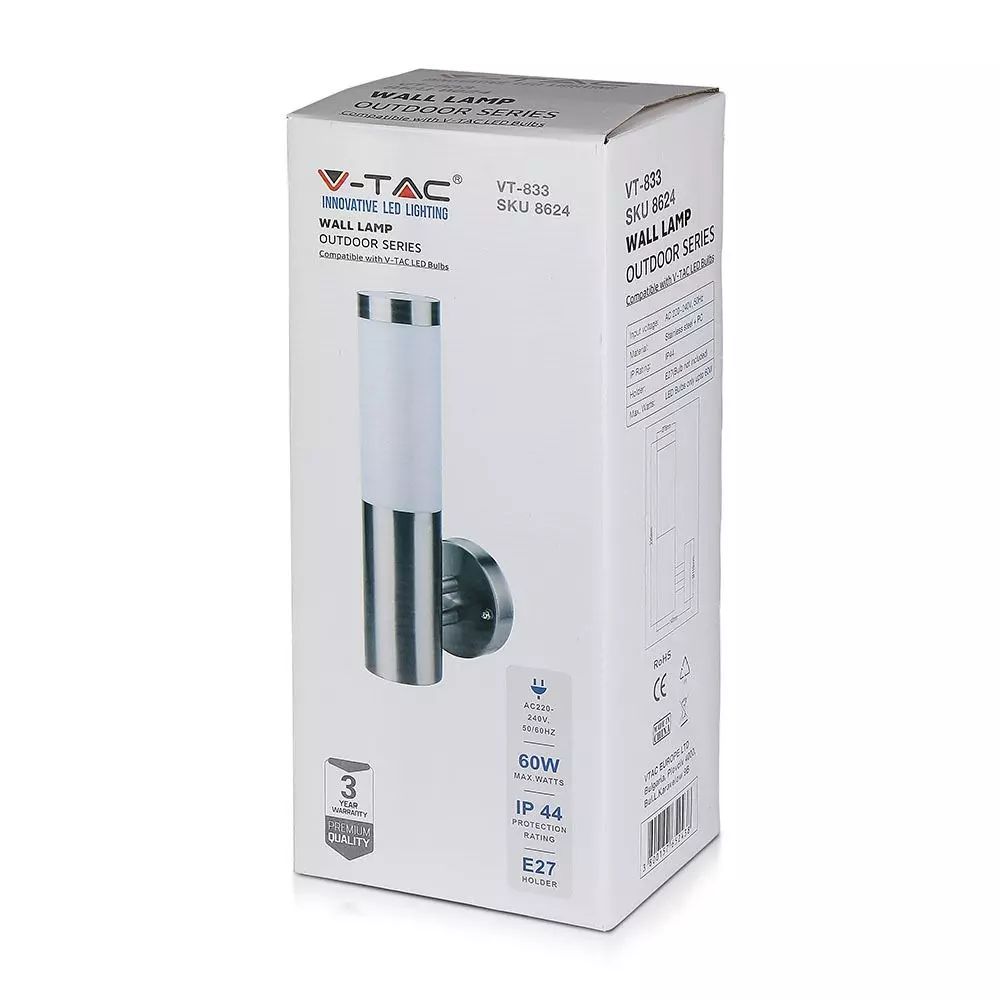 Εξωτερικό επιτοίχιο φωτιστικό Ε27, σώμα ανοξείδωτο ατσάλι V-TAC – 8624