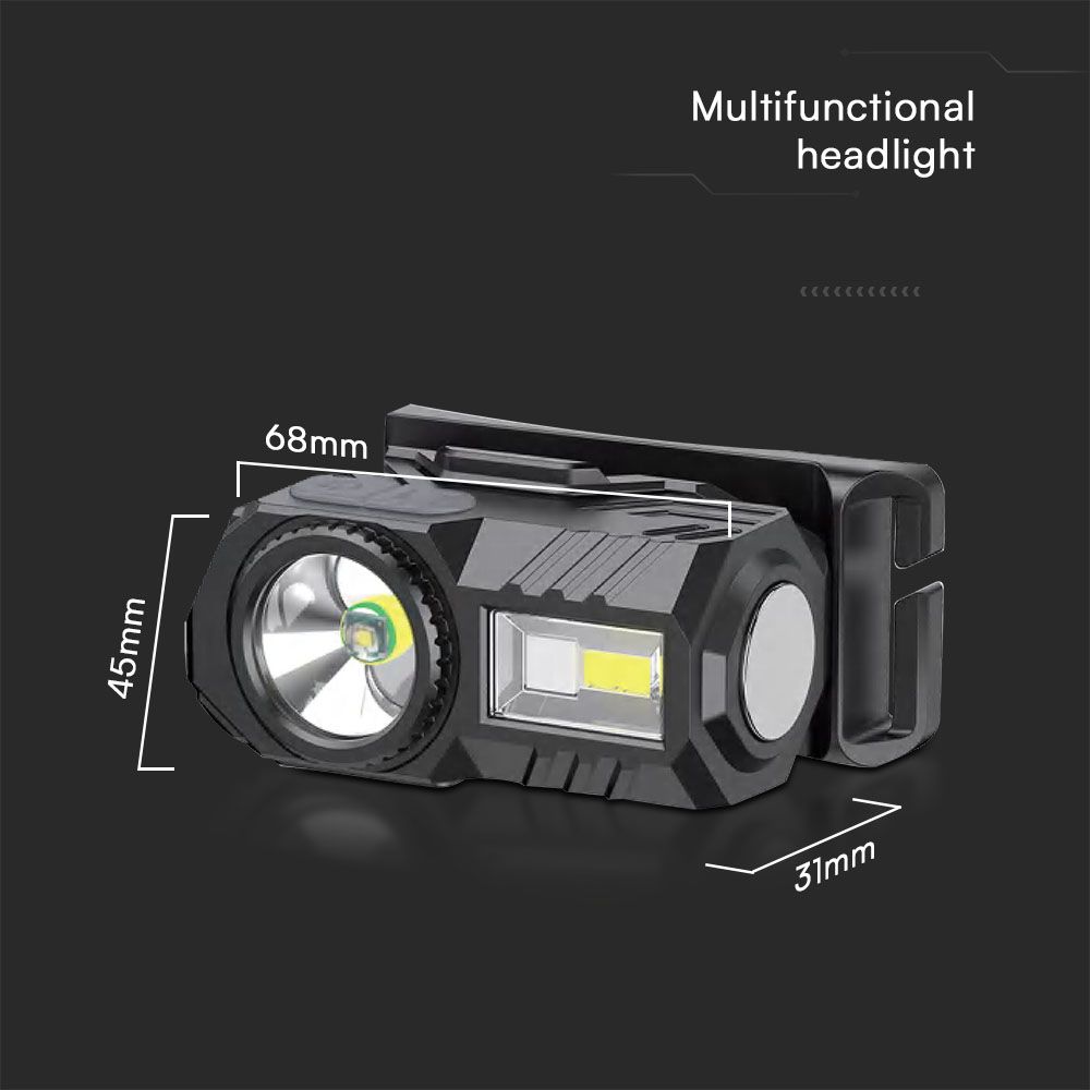 Φακός Κεφαλής Επαναφορτιζόμενος LED 3W RGBW IP44 Μαύρος V-TAC – 23339VT