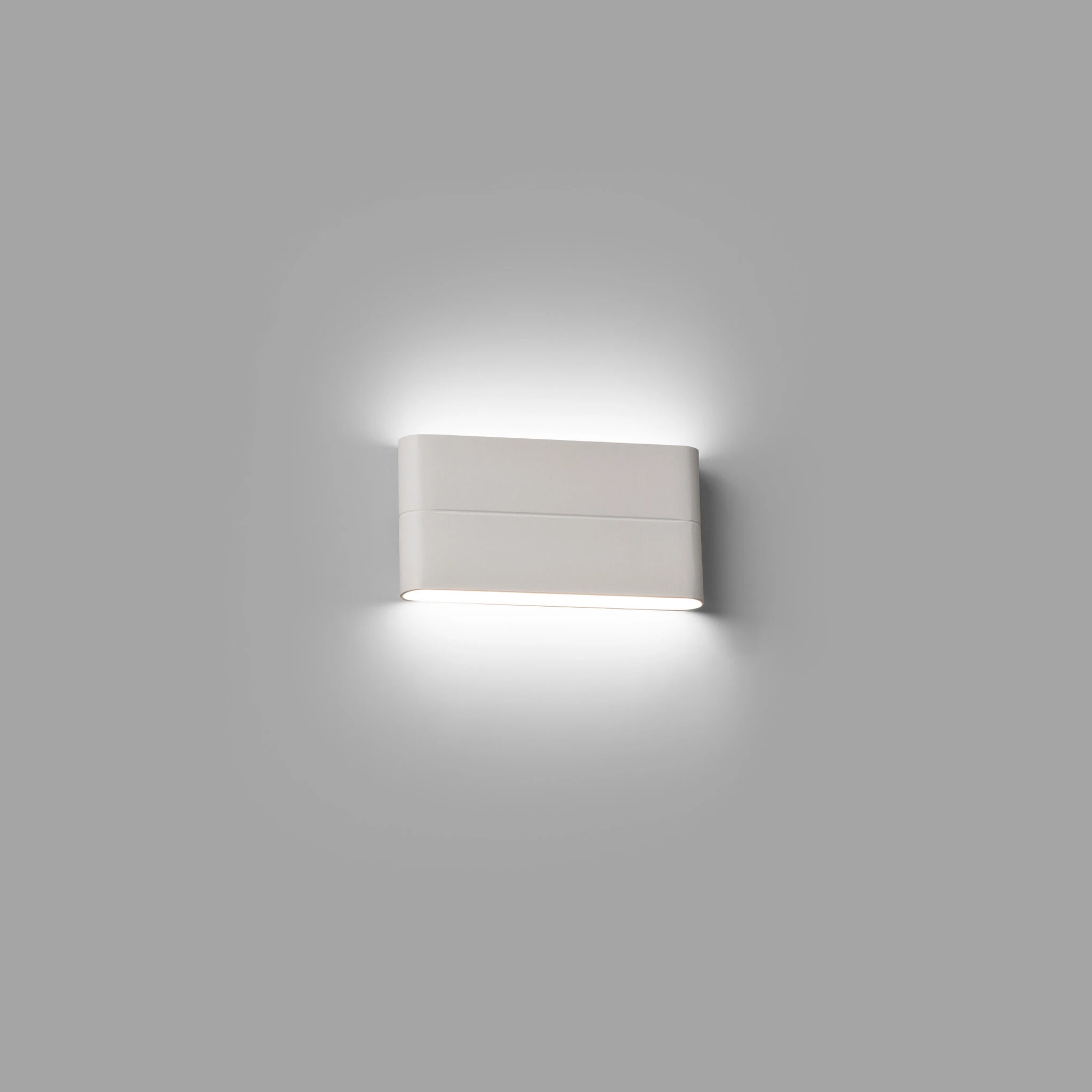 Επιτοίχιο φωτιστικό χώρο χώρου LED από χυτό αλουμίνιο και διαχύτη από γυαλί οπάλιο. Η πηγή φωτός είναι LED 12W και ζεστό φως, περιλαμβάνεται ο οδηγός. Αυτό το μοντέρνο λευκό φωτιστικό τοίχου με πάνω και κάτω δέσμη φωτός είναι ιδανικό για να φωτίζει βεράντες, κήπους και εξωτερικούς χώρους διέλευσης.