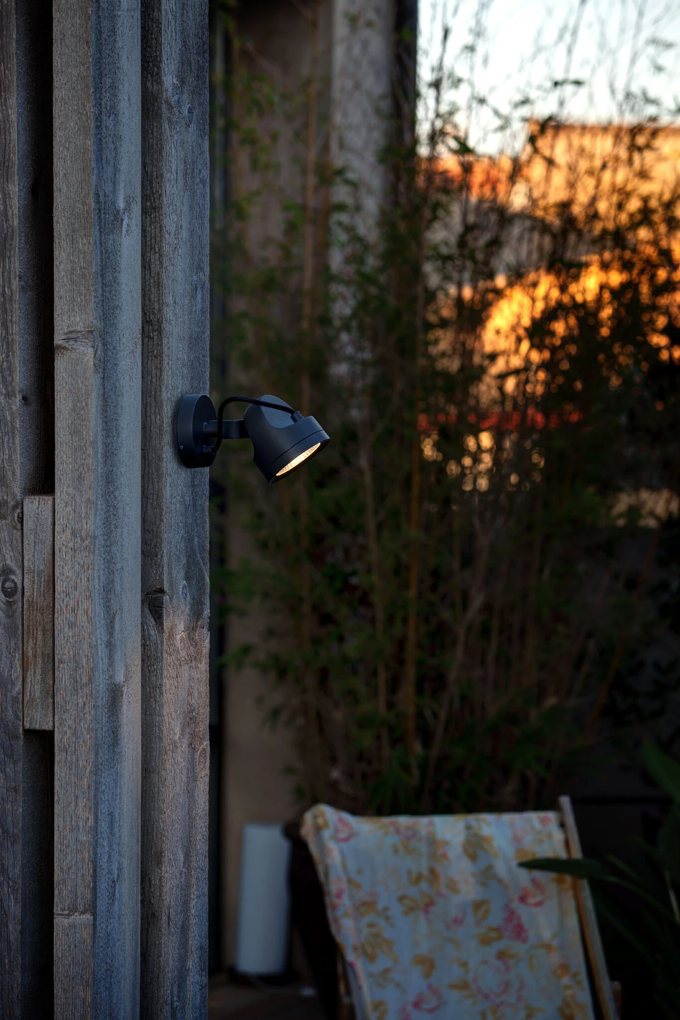 Προβολέας LED για φωτισμό εσωτερικού χώρου, κατασκευασμένος από χυτό αλουμίνιο και έχει σχεδιαστεί από τους Alex & Manel Lluscà. Η πηγή φωτός είναι COB LED 15W. Αυτός ο μοντέρνος και μινιμαλιστικός προβολέας μπορεί να ρυθμιστεί κατά 90° οριζόντια. Είναι ιδανικό για να φωτίζει κήπους και βεράντες, εστιάζοντας το φως του. Αυτή η λάμπα διαθέτει IP65 που παρέχει υψηλή προστασία από τη βροχή και τα στερεά.