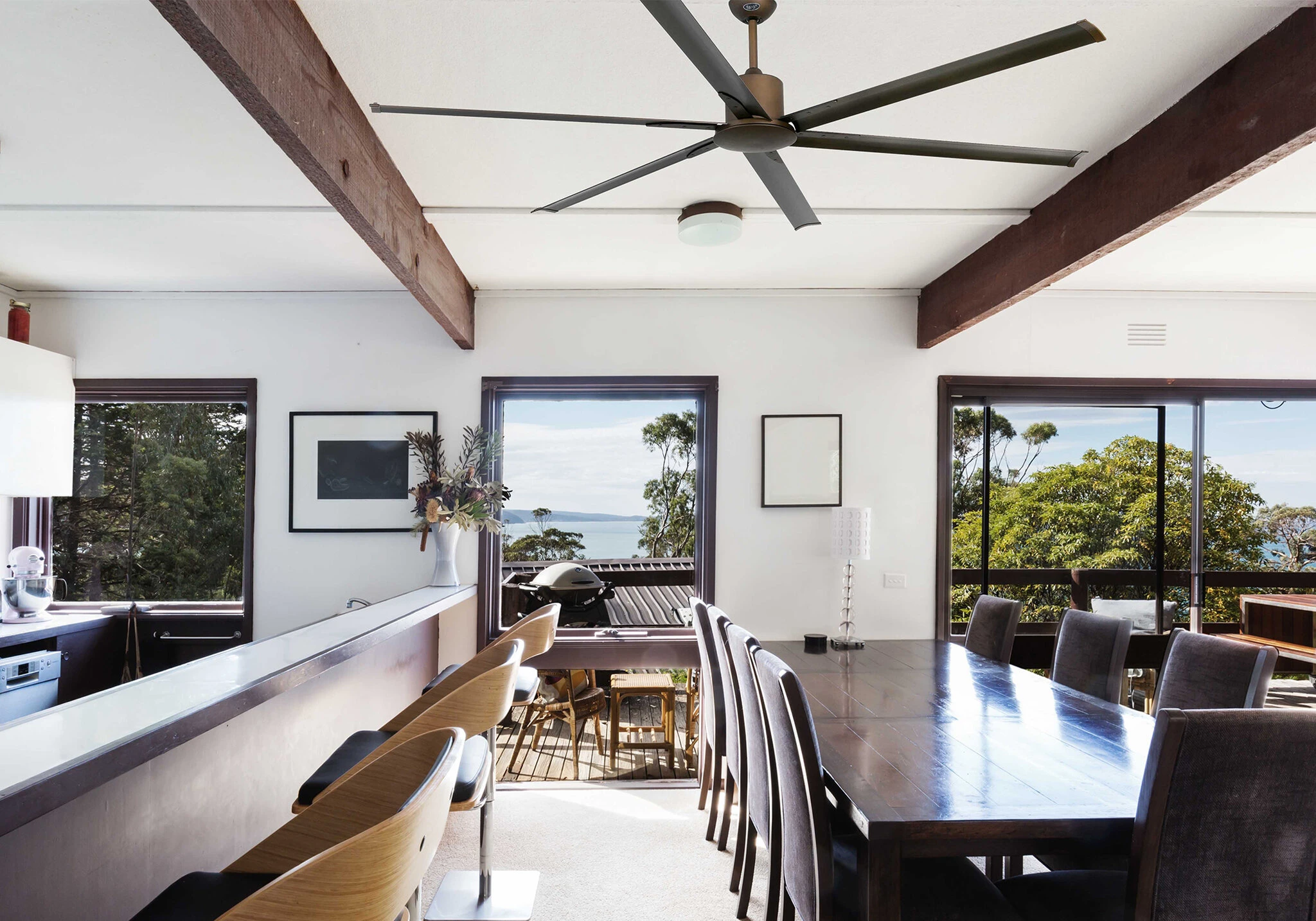 Μεγάλος ανεμιστήρας οροφής με 6 αεροδυναμικές λεπίδες που αυξάνουν την αίσθηση φρεσκάδας και πρωτοποριακό σχεδιασμό. Η ΑΝΔΡΟΣ είναι ένας σύγχρονος ανεμιστήρας οροφής, ιδανικός για τον αερισμό δωματίων άνω των 17,6m2. Λειτουργεί με τηλεχειριστήριο. Αυτός ο ανεμιστήρας οροφής με κινητήρα DC έχει 6 ρυθμισμένες ταχύτητες με κατανάλωση 4-6-10-15-22-35W και 30-41-53-64-74-88 στροφές ανάλογα με την ταχύτητα. Αυτός ο ανεμιστήρας διαθέτει αντίστροφη λειτουργία καλοκαίρι-χειμώνα, ώστε να μπορείτε να τον χρησιμοποιείτε και το χειμώνα, βελτιώνοντας την απόδοση του συστήματος θέρμανσης σας. Ροή αέρα: 406,40 m3 min / 14352 CFM. Αυτός ο ανεμιστήρας οροφής είναι κατάλληλος για κεκλιμένη οροφή.