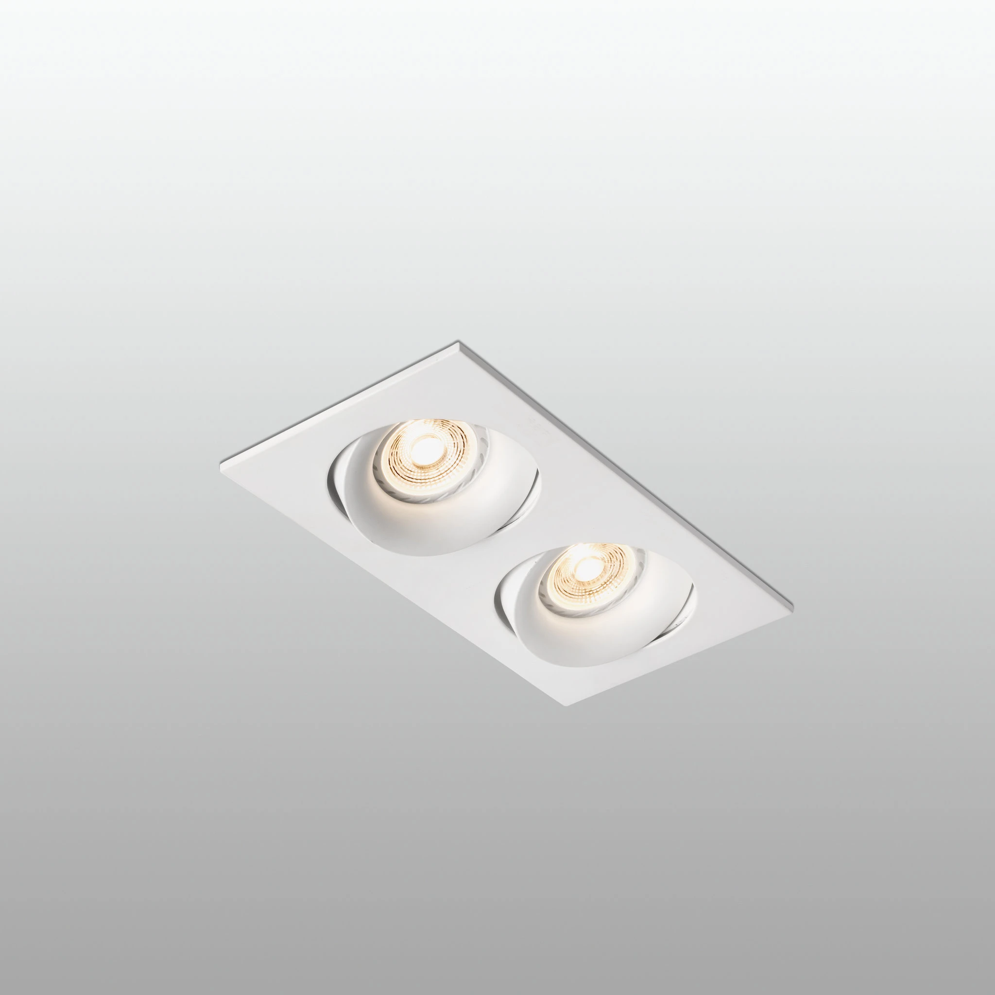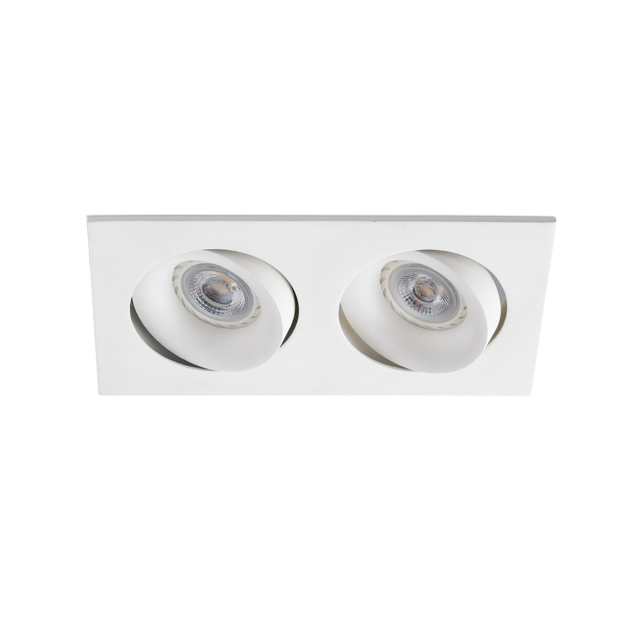 Φωτιστικό οροφής χωνευτό από αλουμίνιο, σε λευκό φινίρισμα. Υπάρχουν πολλές επιλογές ως πηγή φωτισμού: 2 x MR16 ή 2 x GU10 στα οποία δεν περιλαμβάνονται ούτε ο μετασχηματιστής ούτε οι πρίζες. Αυτό το ρυθμιζόμενο φωτιστικό σε εσοχή είναι ιδανικό για φωτισμό διαφορετικών χωρών του σπιτιού, όπως το σαλόνι.