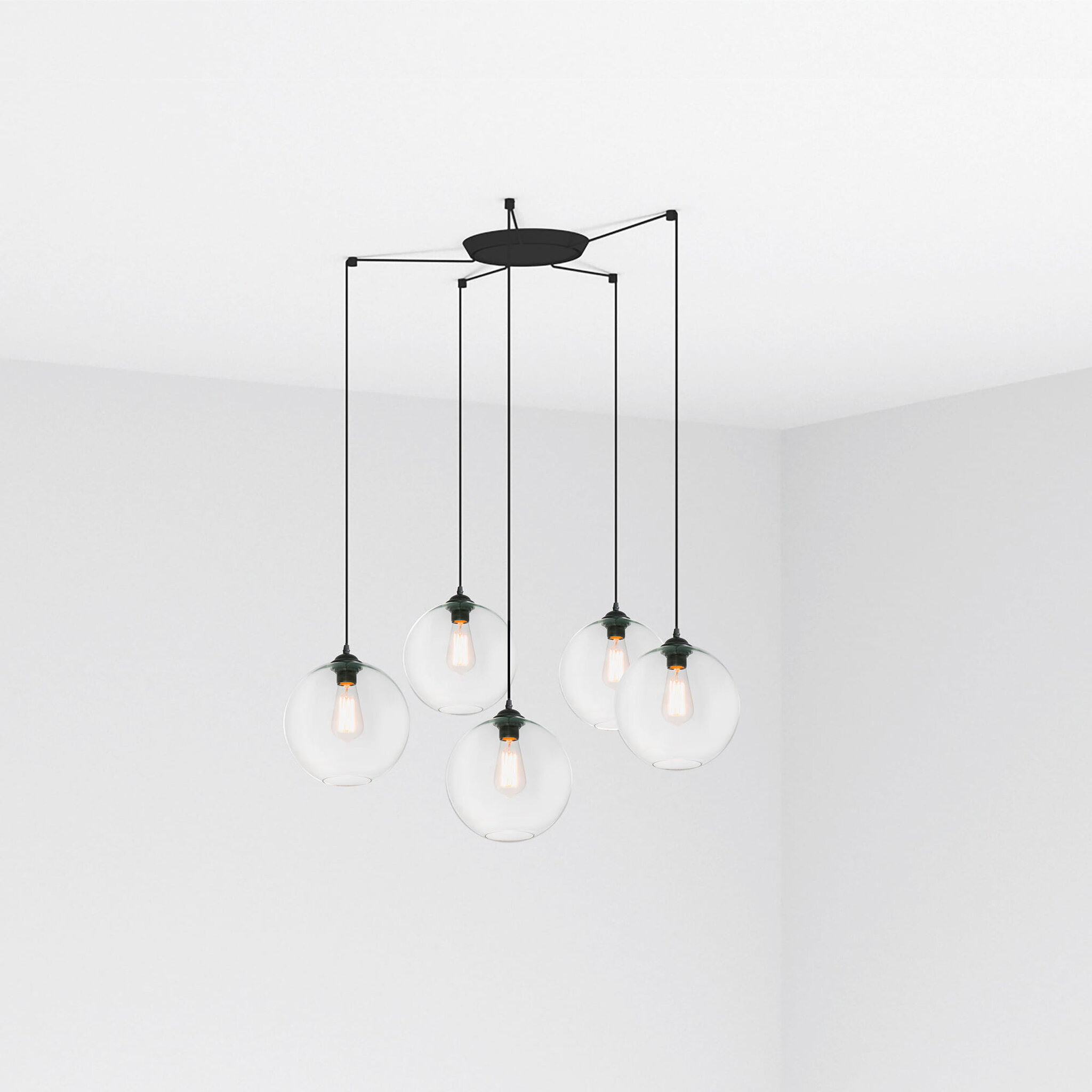 Faro Barcelona CLARA Μαύρο-Διαφανές Κρεμαστό Φωτιστικό 5ΧE27 – 64128-5L
