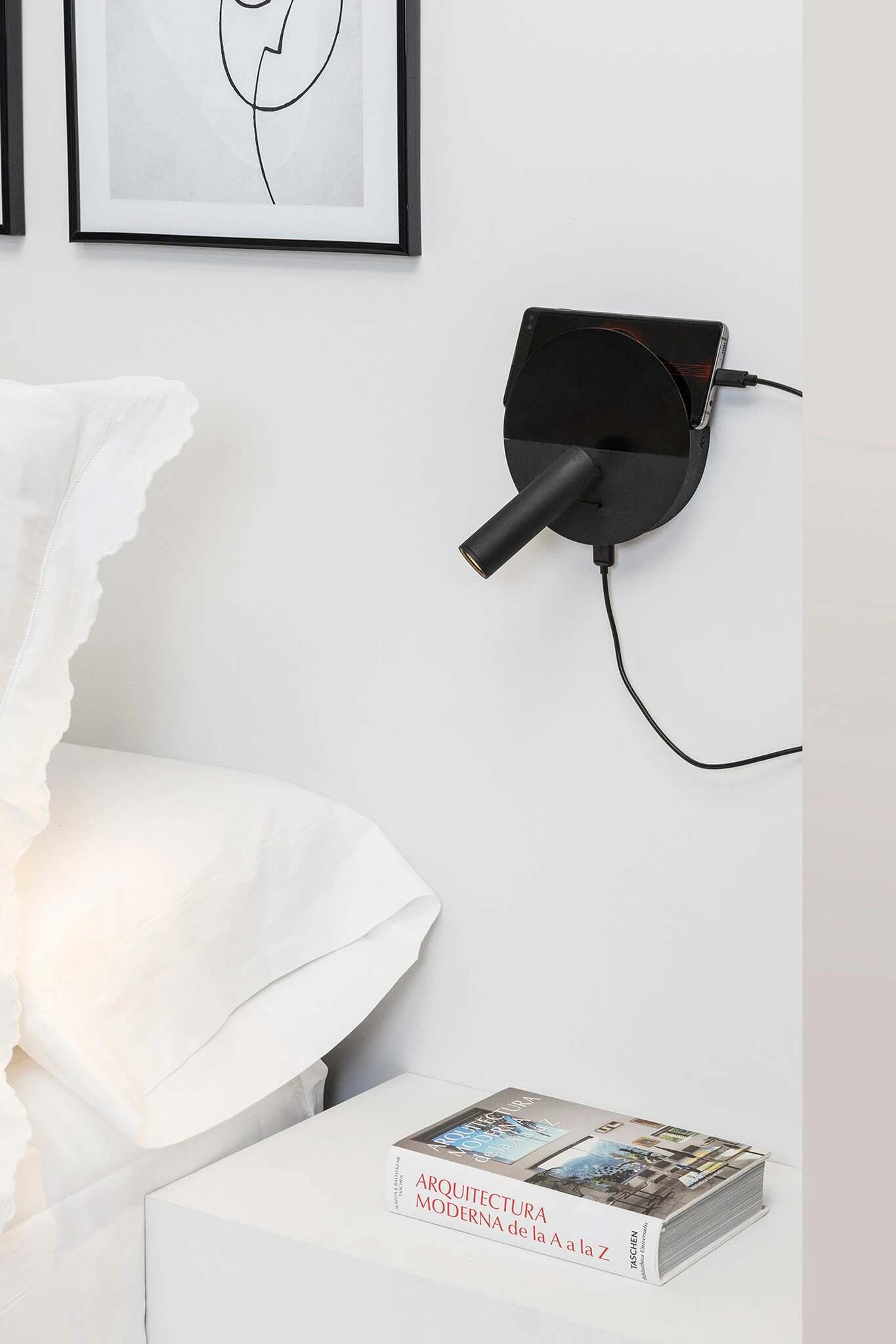 Το DUAS είναι ένα μαύρο φωτιστικό τοίχου σχεδιασμένο από την Faro Lab και κατασκευασμένο από χάλυβα. Το κυκλικό του σχήμα χωρίζεται για να αποκαλύψει δύο φινιρίσματα, με το πάνω πιο αδιαφανές. Διαθέτει είσοδο USB ιδανική για φόρτιση κινητού τηλεφώνου και ένα μικρό δίσκο στο πίσω μέρος για να αφήνετε τη συσκευή ενεργοποιημένη κατά τη φόρτιση. Το DUAS είναι ιδανικό για φωτισμό δωματίου.