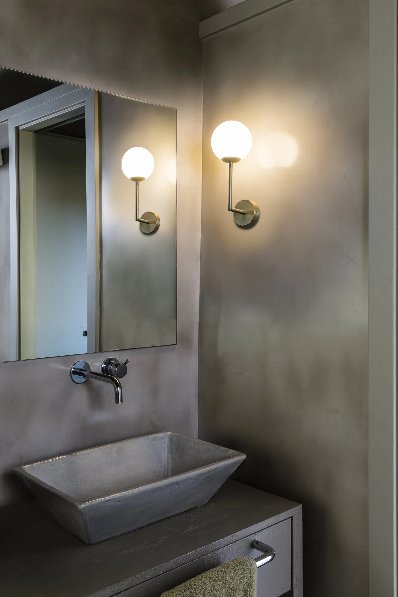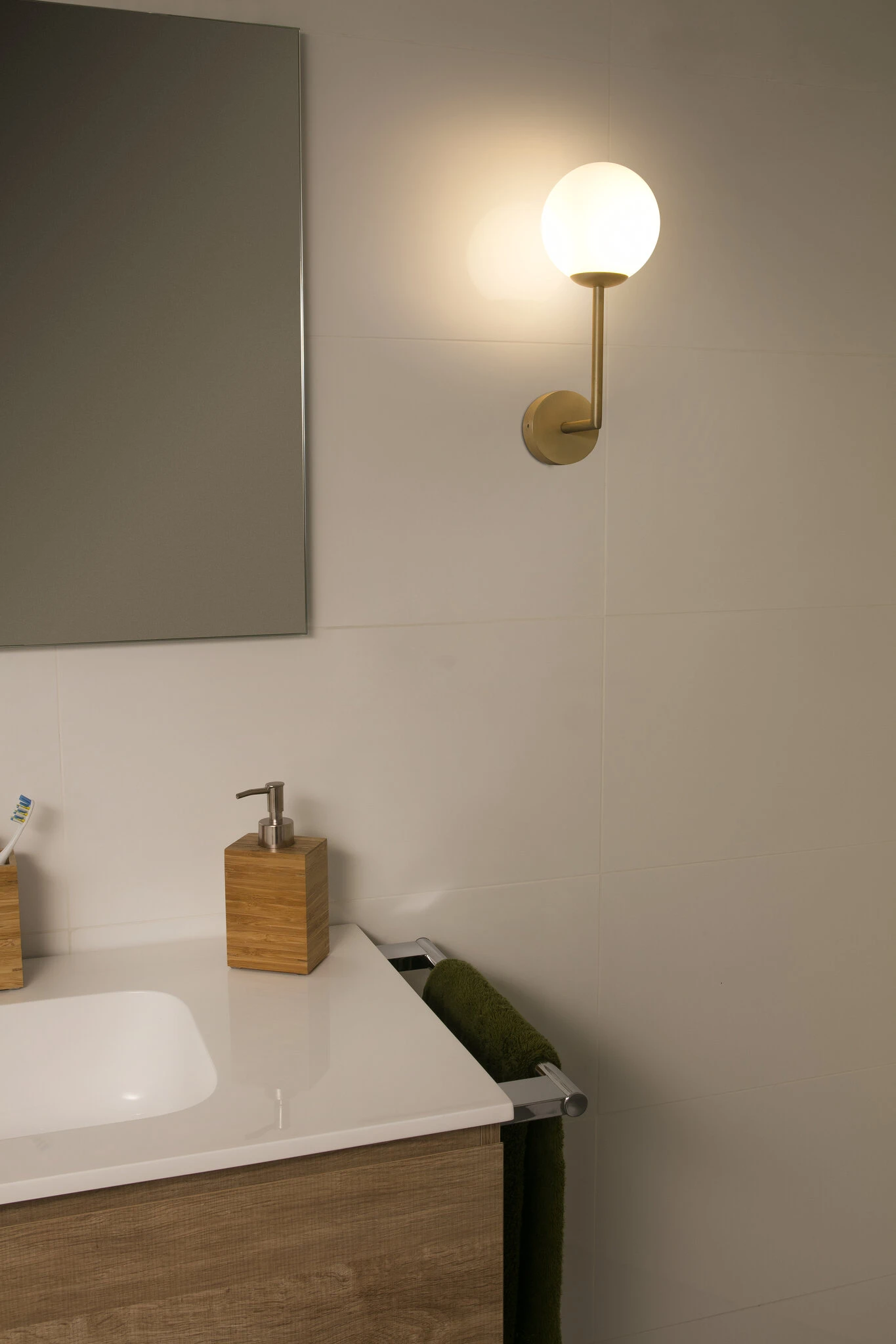 Σατέν χρυσό φωτιστικό τοίχου για φωτισμό μπάνιου, κατασκευασμένο από μέταλλο και γυαλί διαχύτη. Το GALA έχει κλασικό σχεδιασμό και IP44. Το GALA έχει δύο επιλογές, προς τα πάνω και προς τα κάτω.