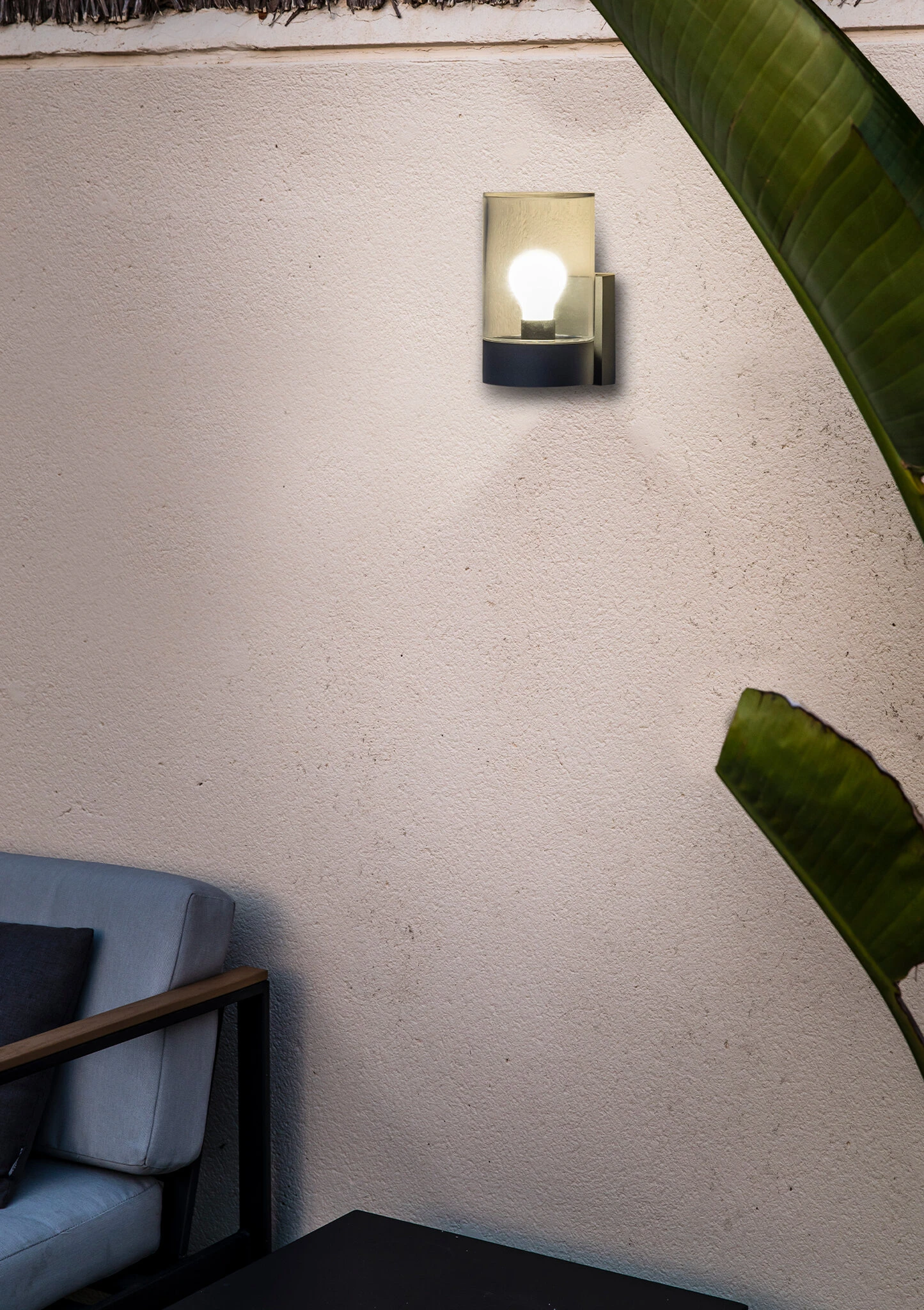 Faro Barcelona KILA Σκούρο Γκρι Φωτιστικό Τοίχου E27 με Διαφανή Διαχύτη 15W IP65 – 71743