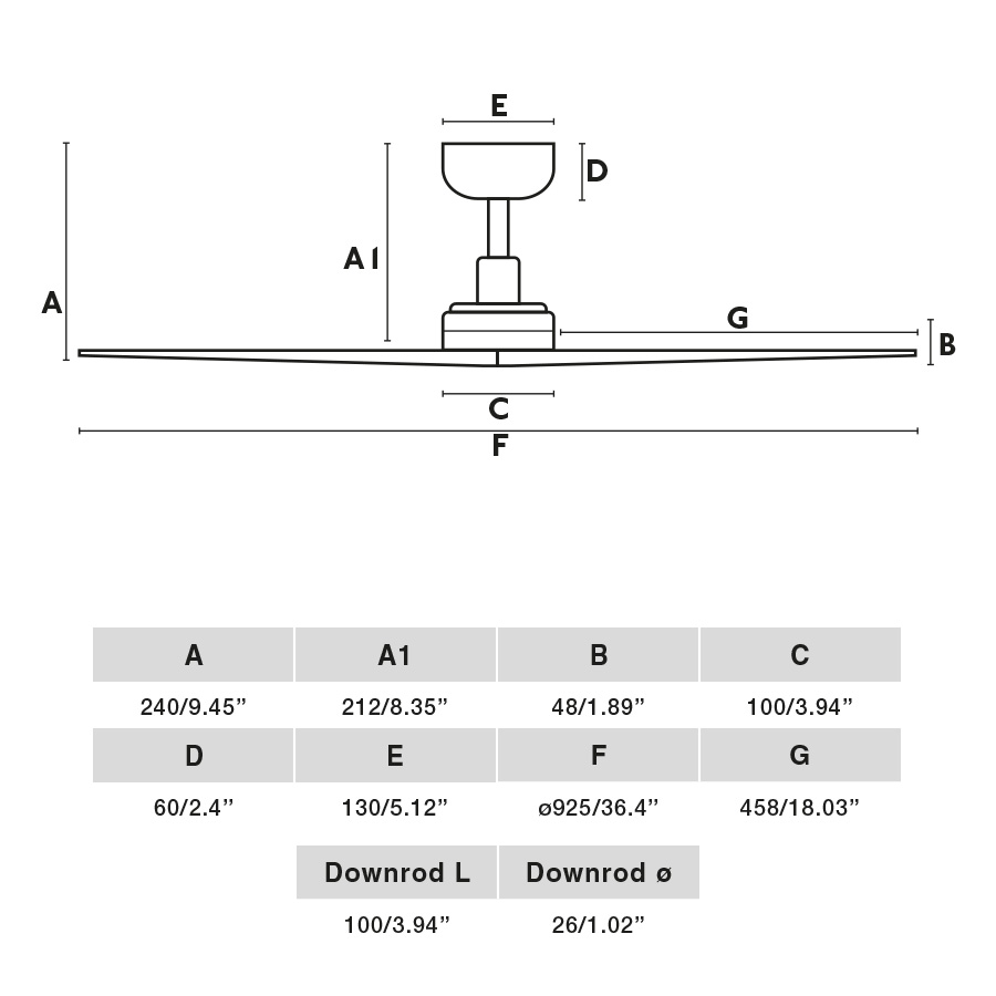 Είναι πολύ σημαντικό να επιλέξετε το σωστό μέγεθος ανεμιστήρα λαμβάνοντας υπόψη το μέγεθος του δωματίου. Αυτός ο ανεμιστήρας μεγέθους “S” είναι ιδανικός για δωμάτια μικρότερα από 13 m², καθώς έχει διάμετρο μικρότερη από Ø106 cm.