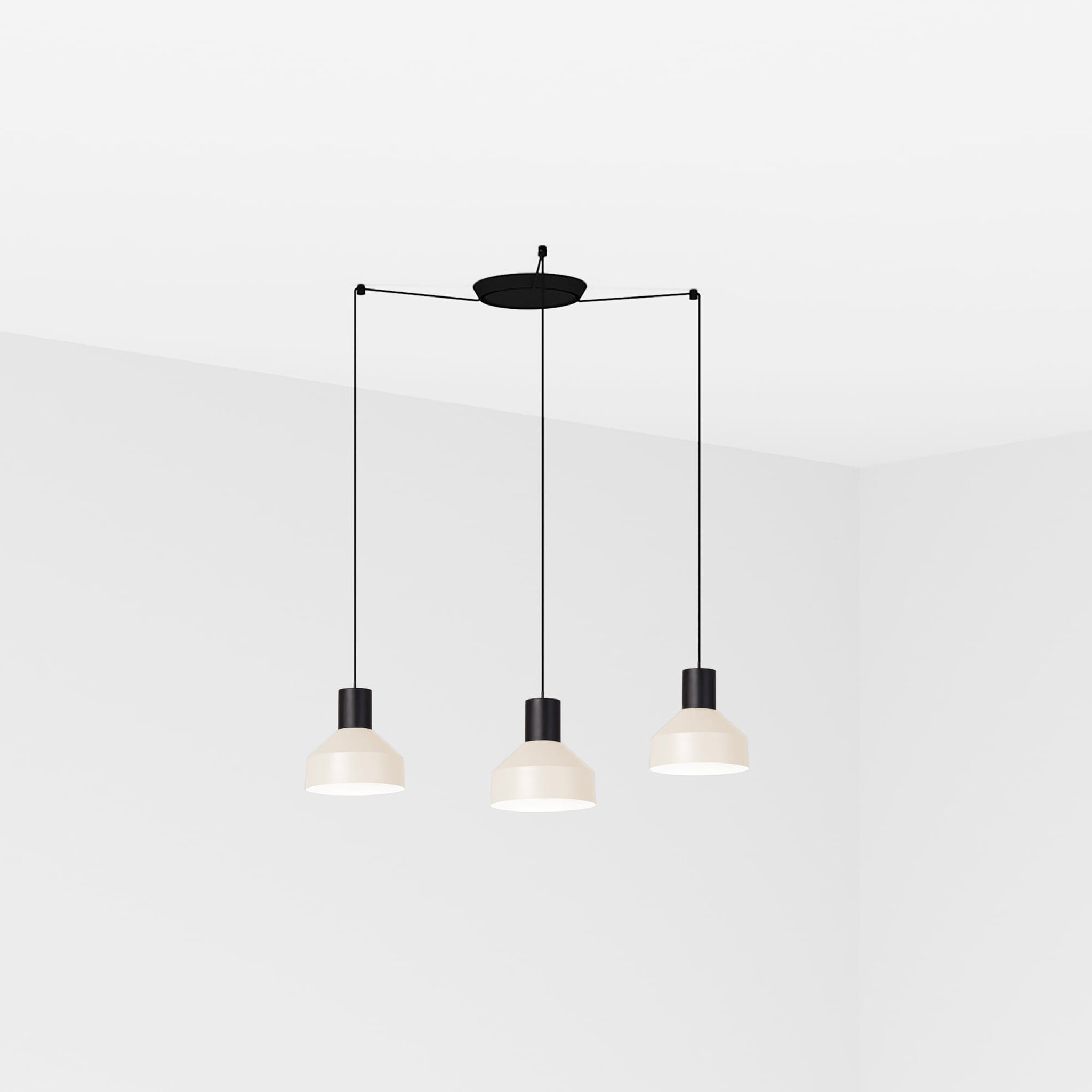 Το KOMBO είναι μια οικογένεια κρεμαστών φωτιστικών που δημιουργήθηκε από τη Nutcreatives. Η σειρά έχει διαφορετικά μεγέθη και φινιρίσματα που μοιράζονται μια μαύρη κυλινδρική δομή στο επάνω μέρος. Η απόχρωση αυτού του μπεζ φωτιστικού είναι κατασκευασμένη από μέταλλο, έχει μινιμαλιστικό στυλ και παίζει με γεωμετρικά σχήματα. Έκδοση με πολλαπλό 3φωτο θόλο. Έχει διάμετρο 20 cm.