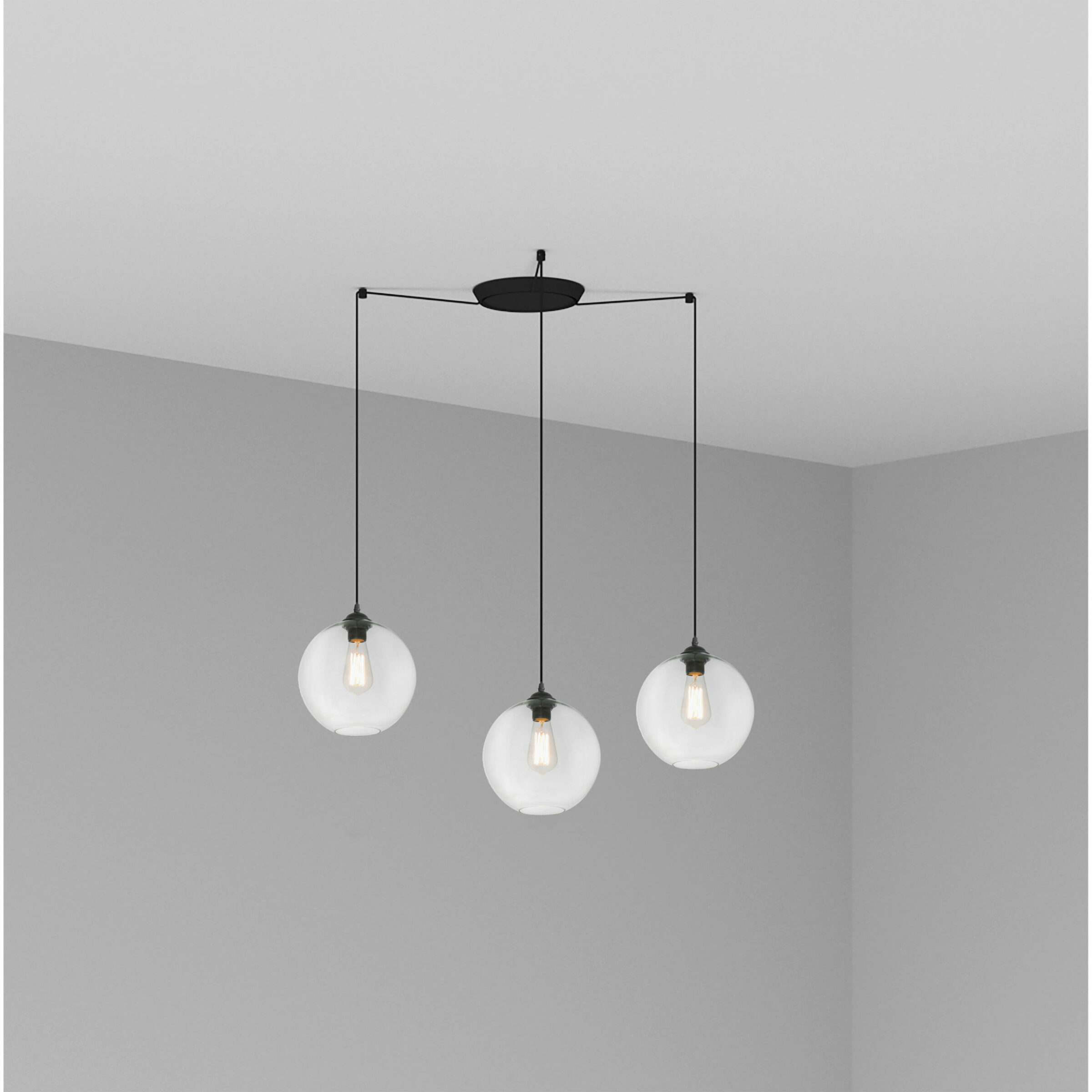 Κρεμαστό φωτιστικό για φωτισμό εσωτερικού χώρου από διαφανές γυαλί. Διαθέτει πρωτοποριακό σχεδιασμό, βιομηχανικό και μοντέρνο στυλ. Το CLARA είναι ένα διακοσμητικό φωτιστικό τέλειο όχι μόνο για το φωτισμό του σπιτιού, αλλά και για το φωτισμό εστιατορίων. Έκδοση με πολλαπλό 3φωτο θόλο.