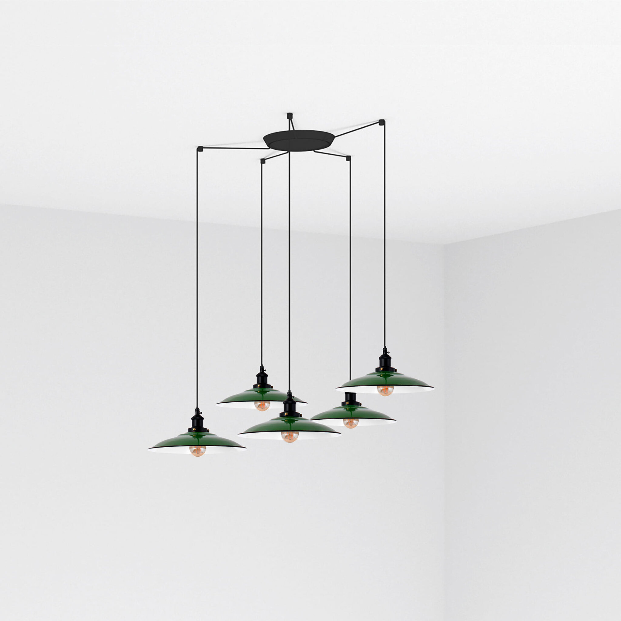Το LANG είναι ένα πράσινο κρεμαστό φωτιστικό με οβάλ σχήμα. Έχει μεταλλική δομή και είναι ιδανική για να φωτίζει μεγάλους χώρους. Διατίθεται και σε άλλα χρώματα. Έκδοση με πολλαπλό 5φωτο θόλο.