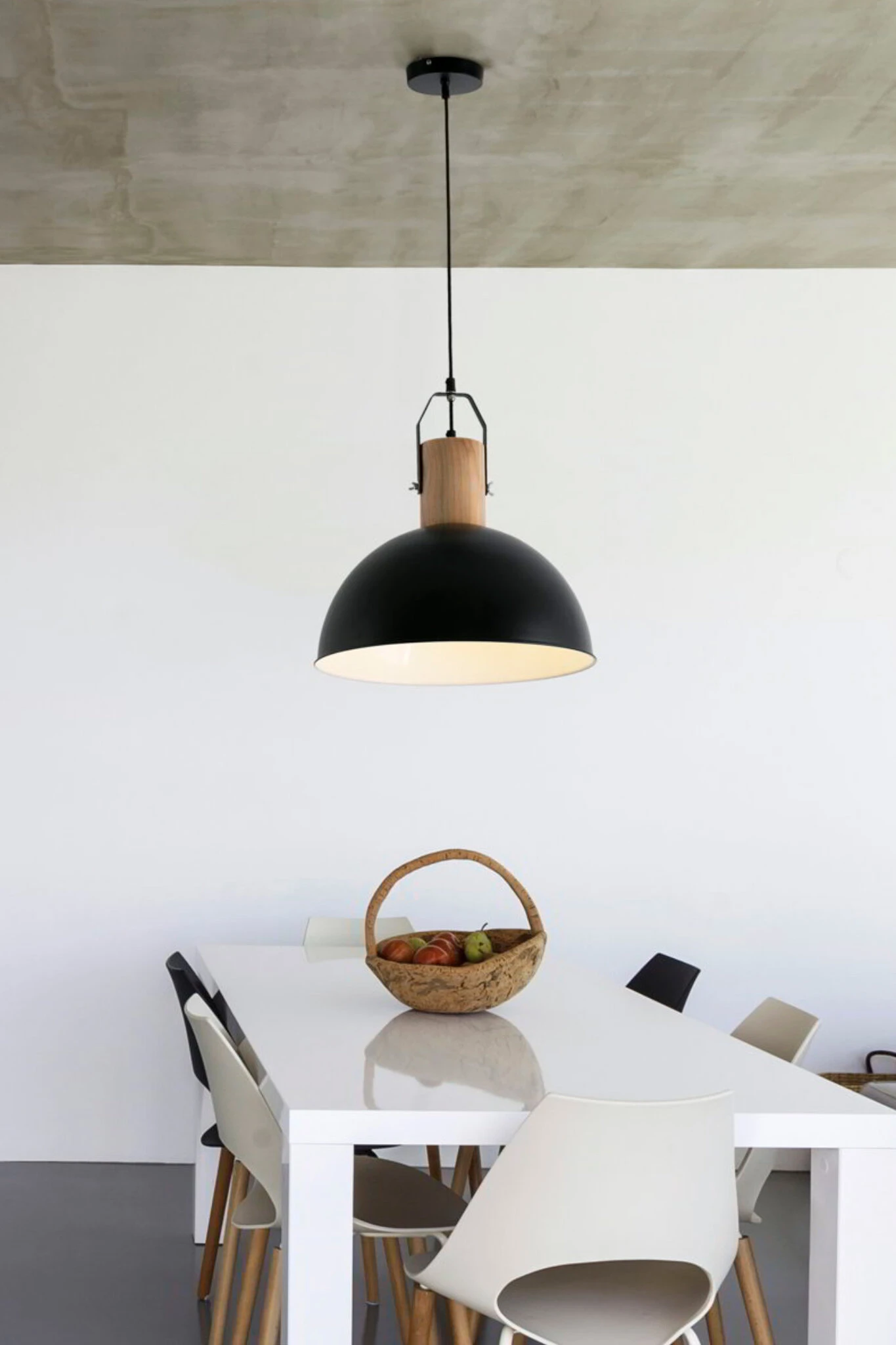 Το MARGOT είναι ένα κρεμαστό φωτιστικό κατασκευασμένο από μέταλλο και ξύλο. Έχει μινιμαλιστικό στυλ με ζεστή πινελιά χάρη στο κομμάτι ξύλου.