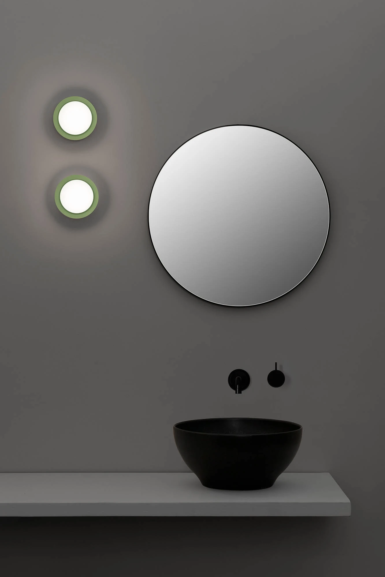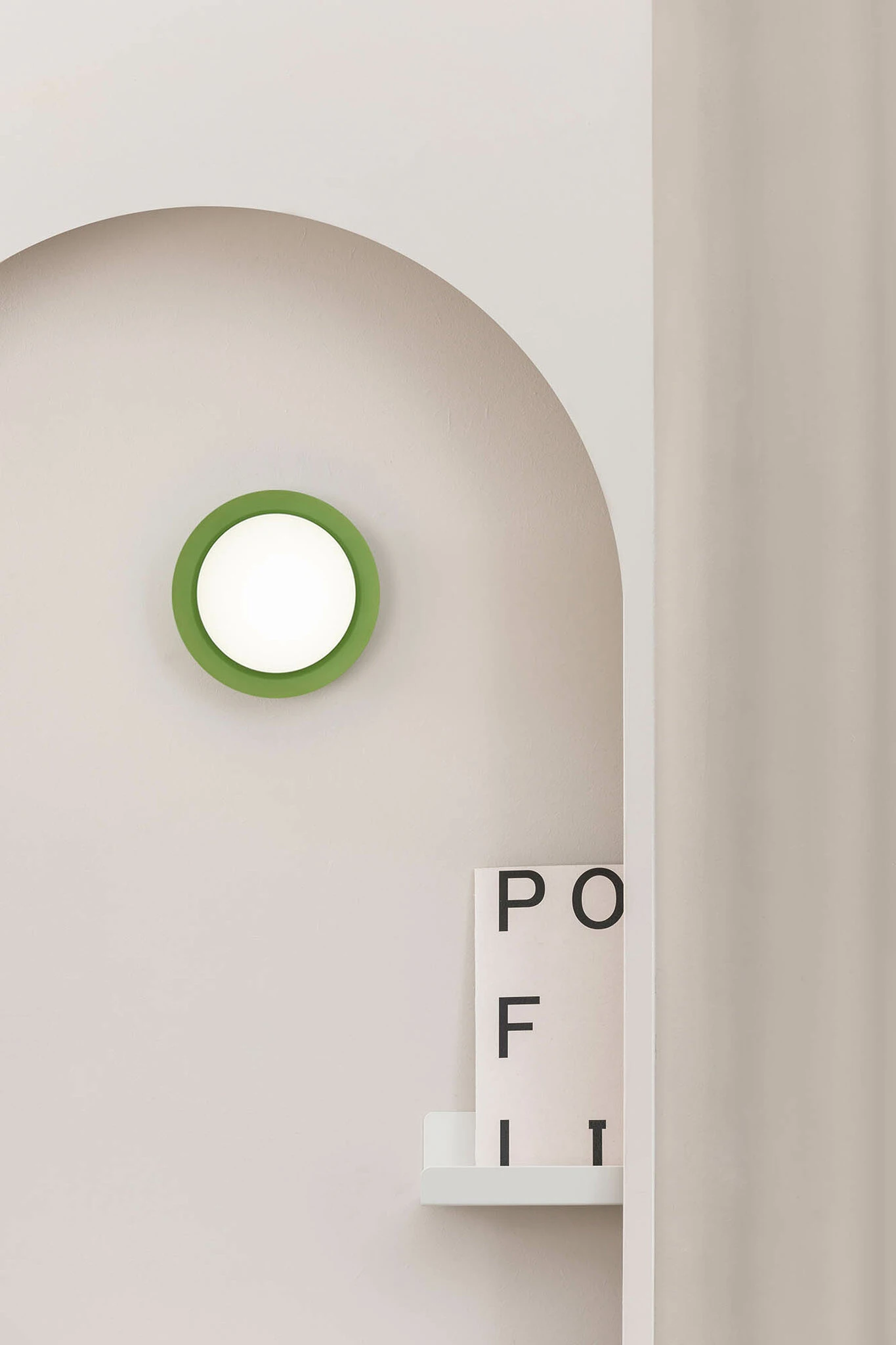 Το MAY είναι μια διασκεδαστική συλλογή από φωτιστικά τοίχου σχεδιασμένα από την Faro Lab. Η δομή του είναι κυκλική σε σχήμα και μπορεί να βρεθεί σε πέντε χρωματισμούς. Μπορεί να τοποθετηθεί στον τοίχο ή στην οροφή ως φωτιστικό οροφής, και σε πολλούς εσωτερικούς χώρους, καθώς και στο μπάνιο χάρη στο IP44 του. Αυτό το πράσινο φωτιστικό τοίχου προβάλλει ένα ομοιόμορφο ζεστό φως και είναι κατασκευασμένο από ατσάλι με γυάλινο διαχύτη.