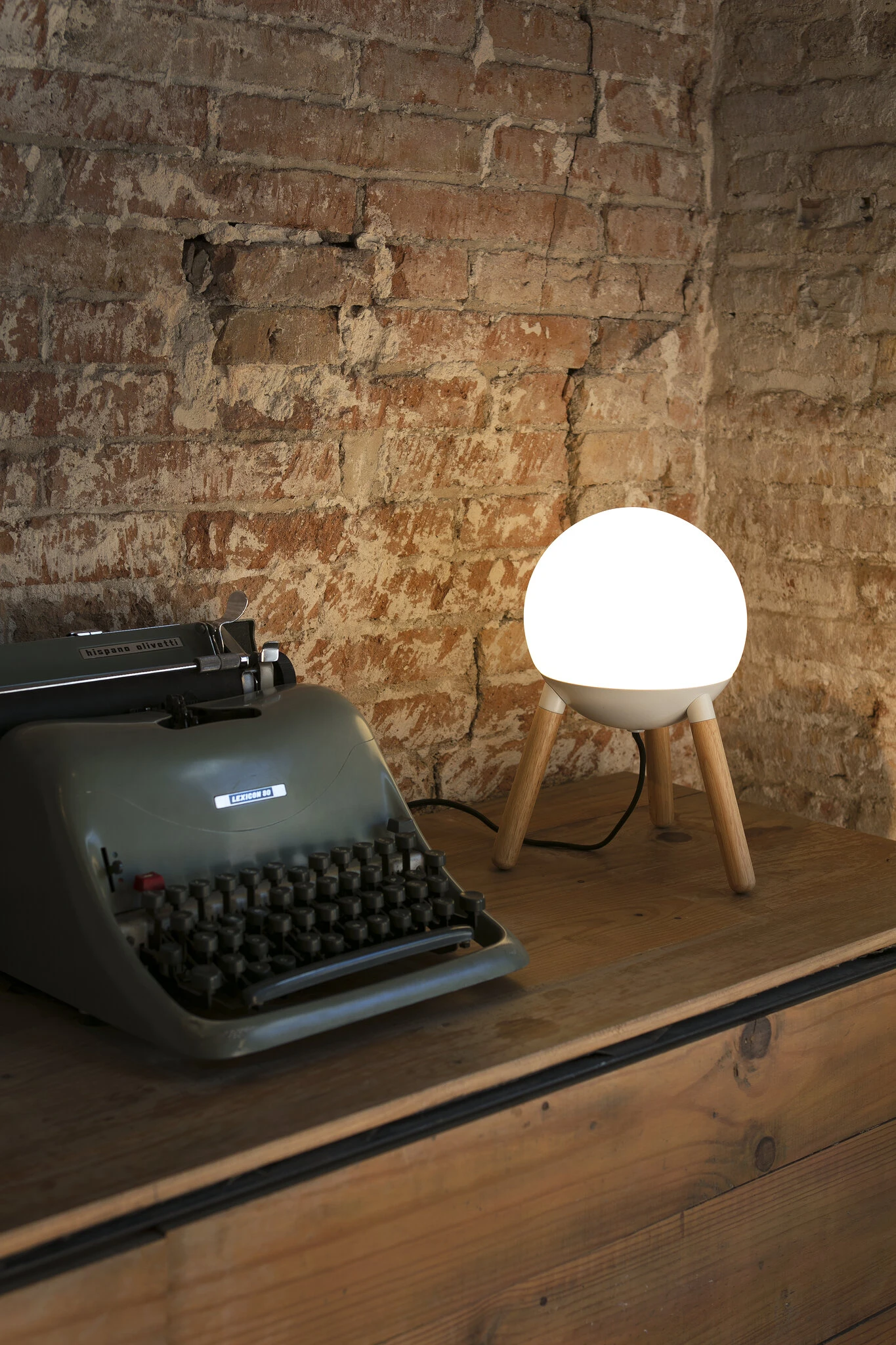 Λευκό επιτραπέζιο φωτιστικό με ξυλώδη δομή και γυαλινο διαχυτικό σχεδιασμένο από την Nahtrang. Το υλικό και το φως δίνουν μια ζεστή και άνετη πινελιά.