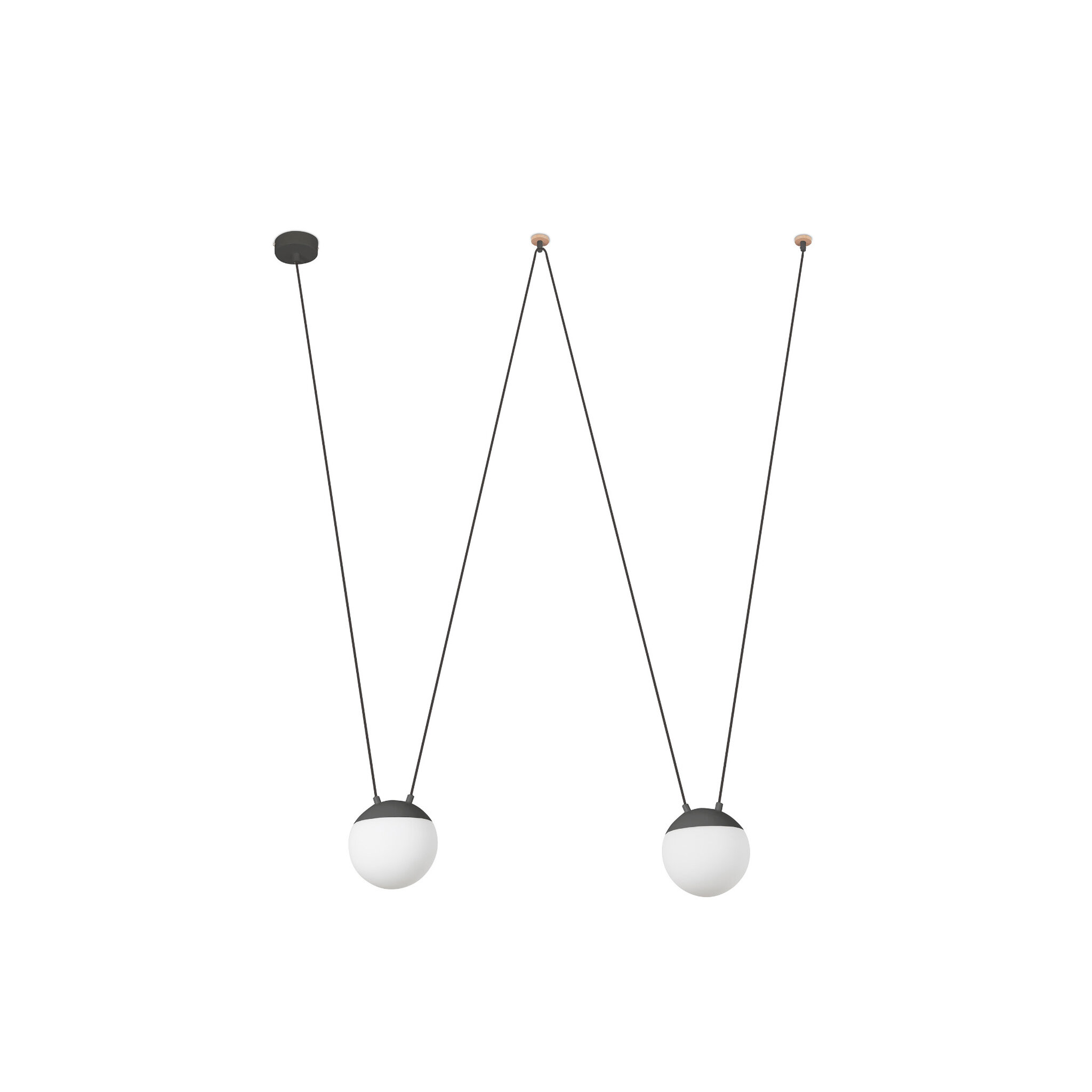 Σκούρο γκρι μενταγιόν με δύο φωτάκια σχεδιασμένα από την Nahtrang με μεταλλικό σκελετό και διαχύτη από πολυανθρακικό οπάλ. Το υλικό και το φως που ρέει μέσα από τον διαχύτη παρέχουν ζεστασιά και άνεση στο σπίτι σας. Αυτό το μενταγιόν σχεδίασης είναι ευέλικτο και προσαρμόσιμο, χάρη στο εξάρτημα με γάντζο, μπορείτε να εγκαταστήσετε το φως όπου το χρειάζεστε. Για τις δυνατότητές του είναι ιδανικός για φωτισμό συμβολαίων χωρών, αλλά και για φωτισμό του σπιτιού