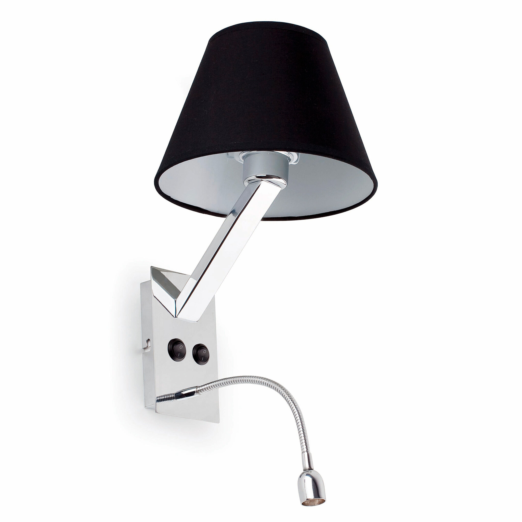 Μοντέρνο επιτοίχιο φωτιστικό μαύρο με αναγνώστη για φωτισμό εσωτερικού χώρου από ατσαλί και υφασμάτινη απόχρωση.