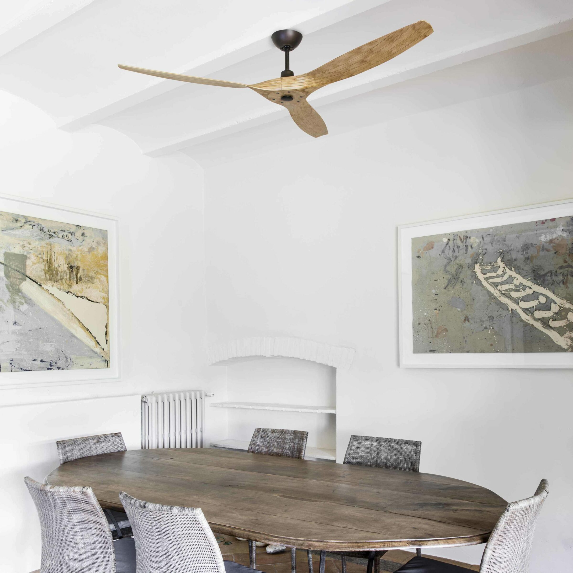 Ανεμιστήρας οροφής με κινητήρα DC κατάλληλος για δωμάτια από 17m2. Λειτουργεί με τηλεχειριστήριο (περιλαμβάνεται). Αυτός ο ανοιχτός καφές ανεμιστήρας έχει 5 ρυθμιζόμενες ταχύτητες 3-7-12-17-38W και 58-105-131-148-195rpm. Ροή αέρα: 211,7 m3 min / 7473 CFM. Αυτός ο ανεμιστήρας οροφής είναι κατάλληλος για κεκλιμένη οροφή. Ελέγξτε τον ανεμιστήρα σας με το WiZ. Λειτουργεί με WIFI 2,4 GHz και κάνει τις ίδιες λειτουργίες με το τηλεχειριστήριο. Είναι απαραίτητο να προσθέσετε τον δέκτη Smart 34150, ο οποίος δεν περιλαμβάνεται.