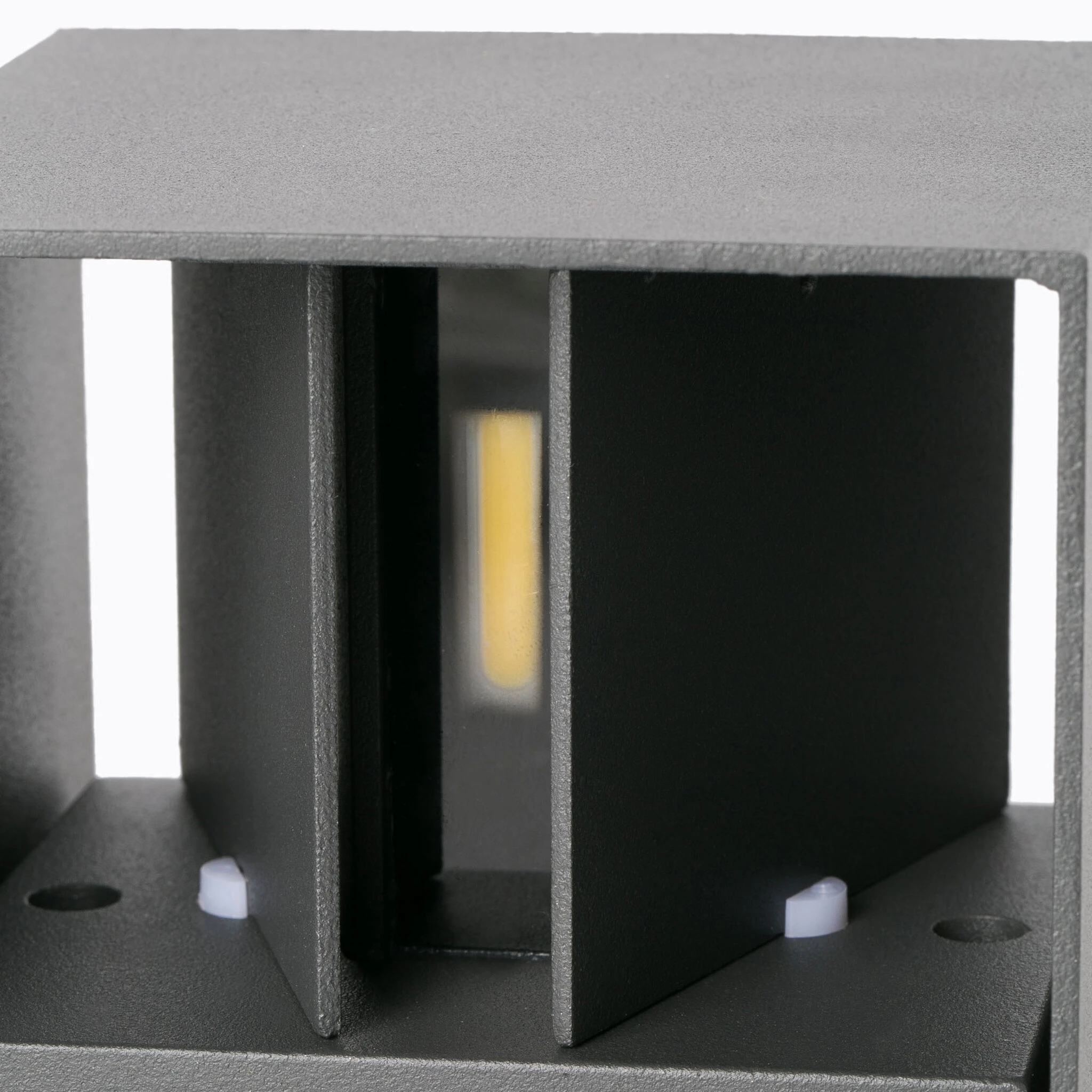 Φωτιστικό τοίχου εξωτερικού χώρου, κατασκευασμένο από χυτό αλουμίνιο. Η πηγή φωτός είναι LED 6W 3000K. Αυτό το επιχείρημα φωτιστικό LED έχει κατευθυνόμενα φτερά που σας θέλει να ελέγξετε τη δέσμη φωτός για να λαμβάνετε τόσο λειτουργικό όσο και διακοσμητικό κεραυνό.