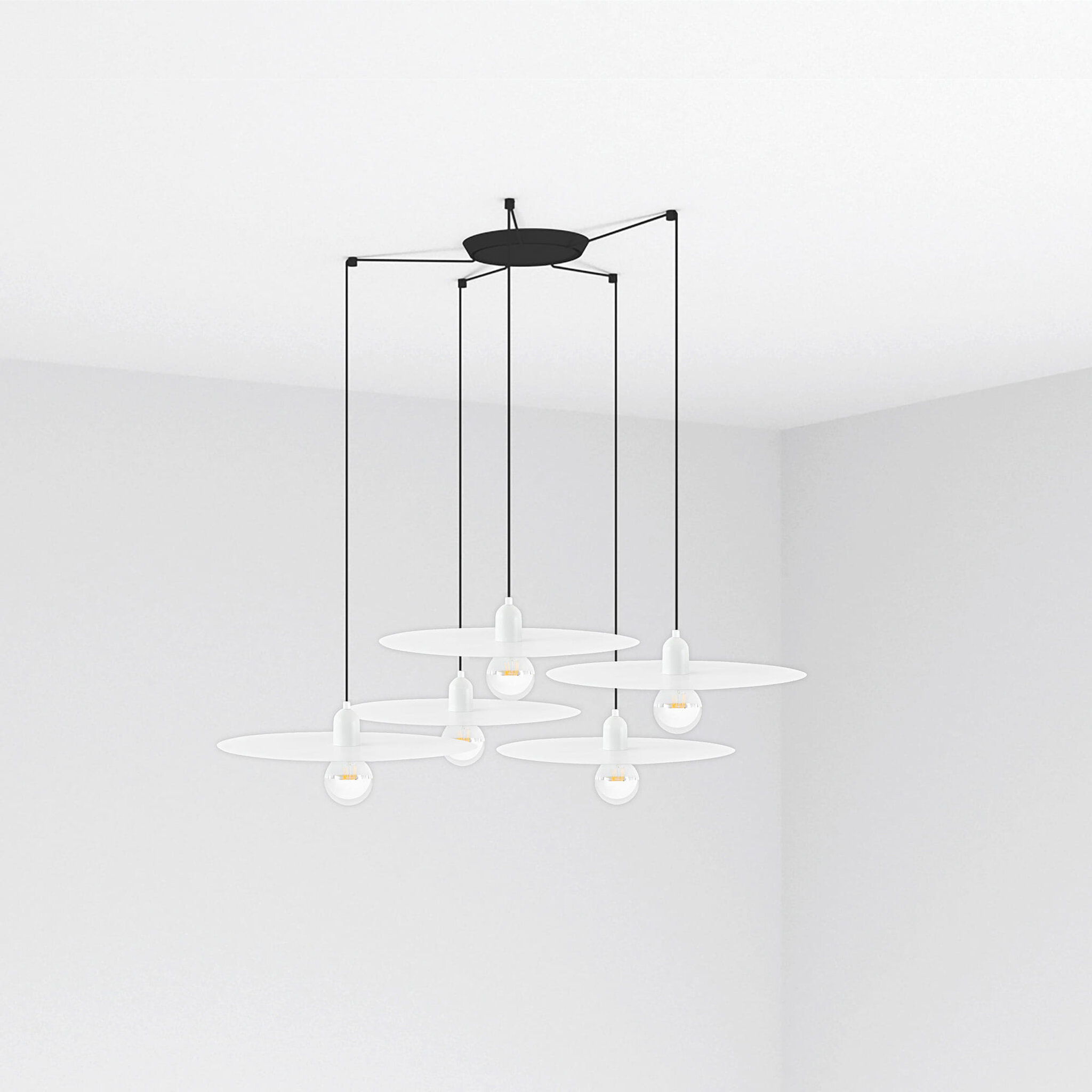 Το PLAT 5L είναι ένα λευκό μινιμαλιστικό κρεμαστό φωτιστικό. Η εστίαση είναι στον λαμπτήρα, η λάμψη του διαχέεται σε όλο το δωμάτιο. Διατίθεται σε δύο χρώματα. Το στυλ του ταιριάζει με το σκανδιναβικό στυλ. Έκδοση με πολλαπλό 5φωτο θόλο.
