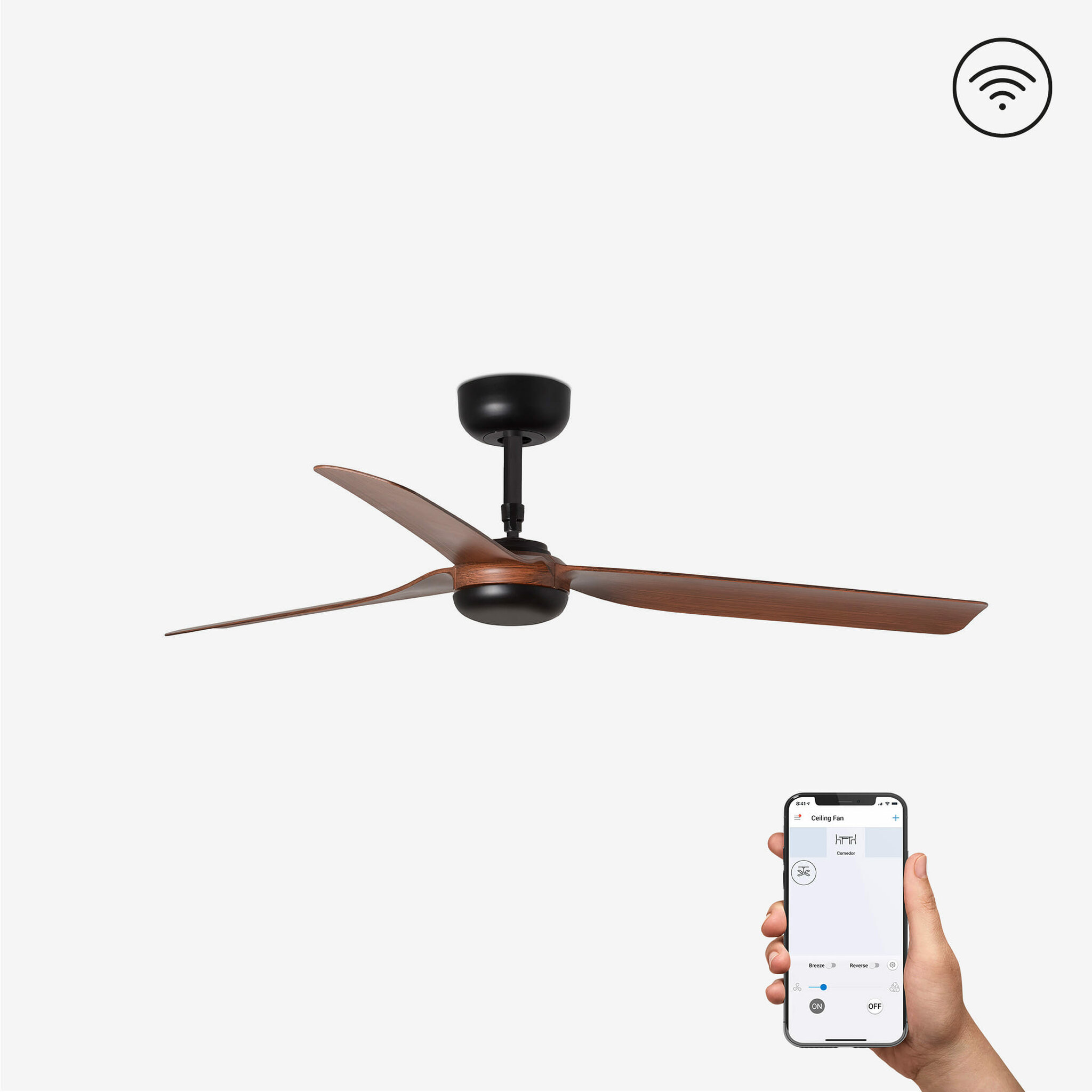 Ελέγξτε τον ανεμιστήρα σας με την εφαρμογή WiZ. Αυτό το έξυπνο χειριστήριο έχει τις ίδιες λειτουργίες με ένα τηλεχειριστήριο. Λειτουργεί με WIFI 2,4 GHz. Είναι συμβατό με Alexa, Google Assistant και Siri.