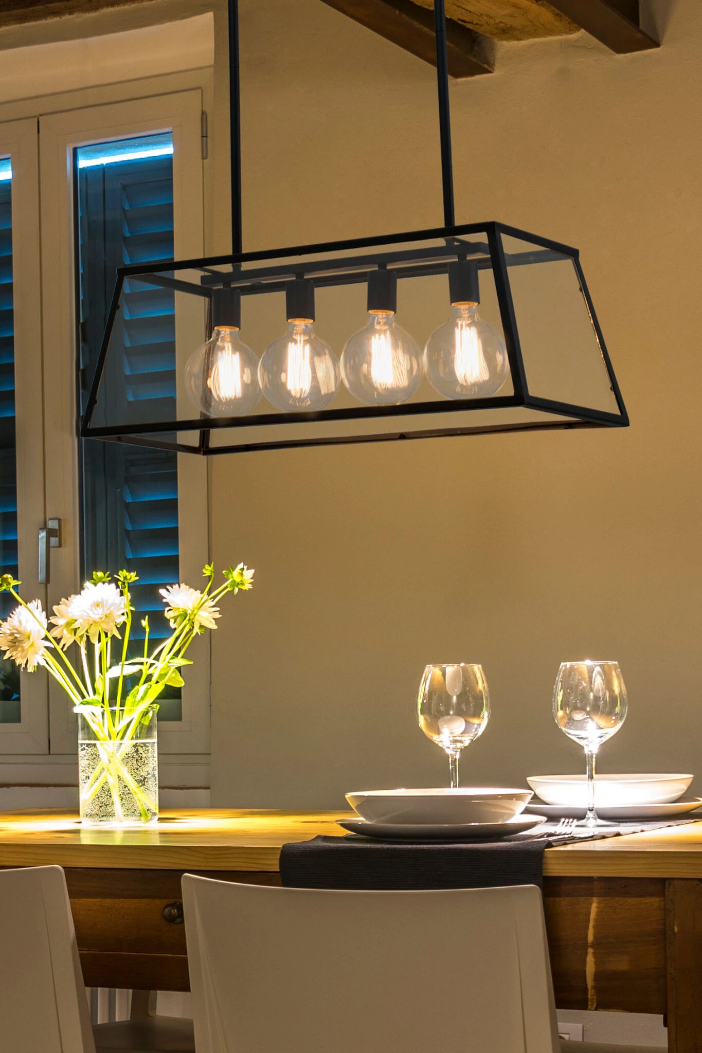 Κρεμαστό φωτιστικό για φωτισμό εσωτερικού χώρου από διάφανο γυαλί και μετάλλο. Διαθέτει πρωτοποριακό σχεδιασμό, βιομηχανικό και μοντέρνο στυλ. Το ROSE 4L είναι ένα διακοσμητικό φωτιστικό τέλειο για τον οικιακό φωτισμό, το οποίο μπορεί να ρυθμιστεί σε ύψος επειδή είναι τηλεσκοπικό.