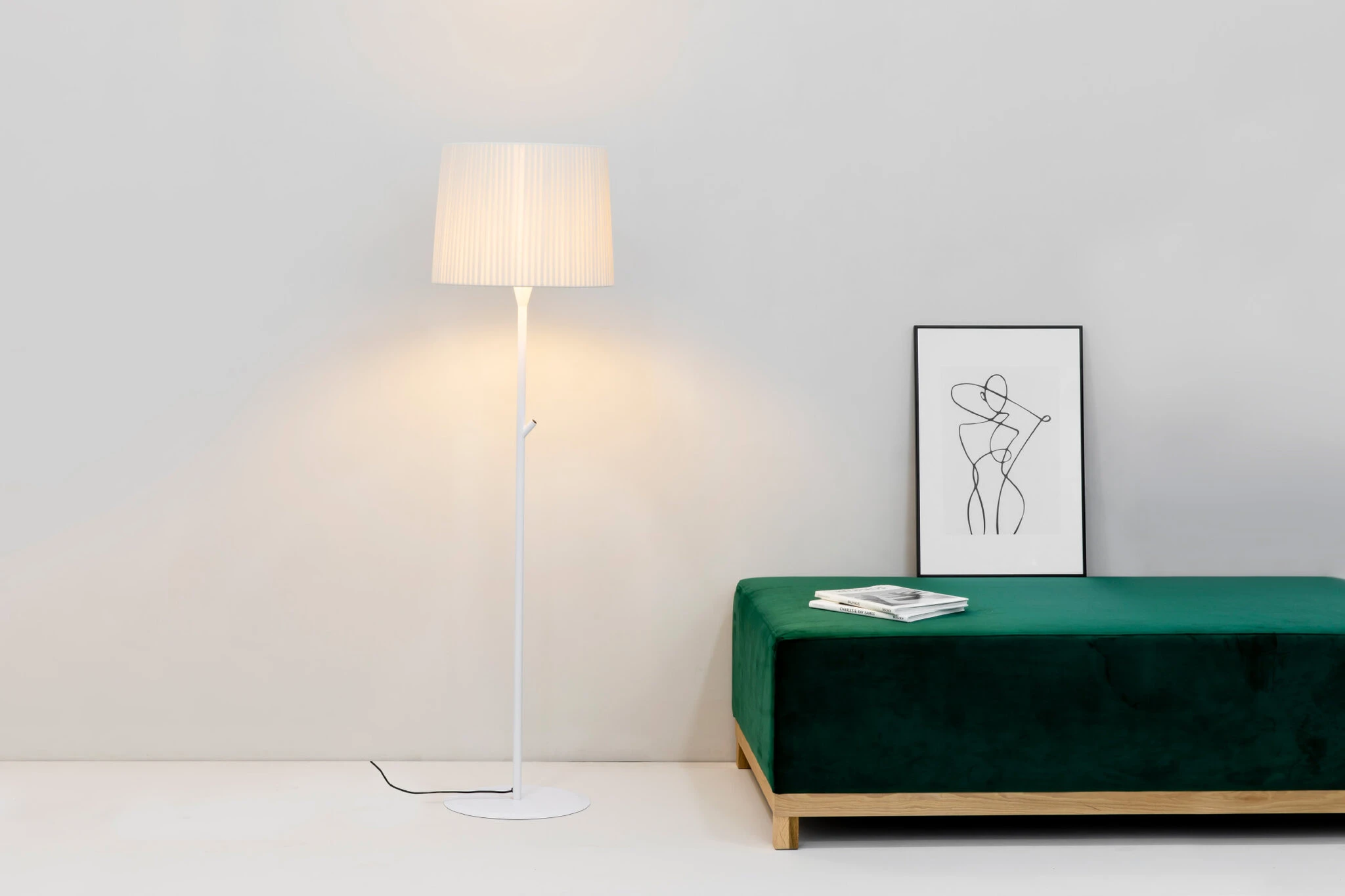 Το SAMBA είναι μια συλλογή λαμπτήρων για εσωτερικό φωτισμό που σχεδιάστηκε από την Faro Lab. Αυτό το λευκό φωτιστικό δαπέδου με μπεζ απόχρωση κορδέλας έχει σχεδιαστεί για να φωτίζει τα υπνοδωμάτια και τα σαλόνια. Είναι μια καλή επιλογή για ξενοδοχεία.