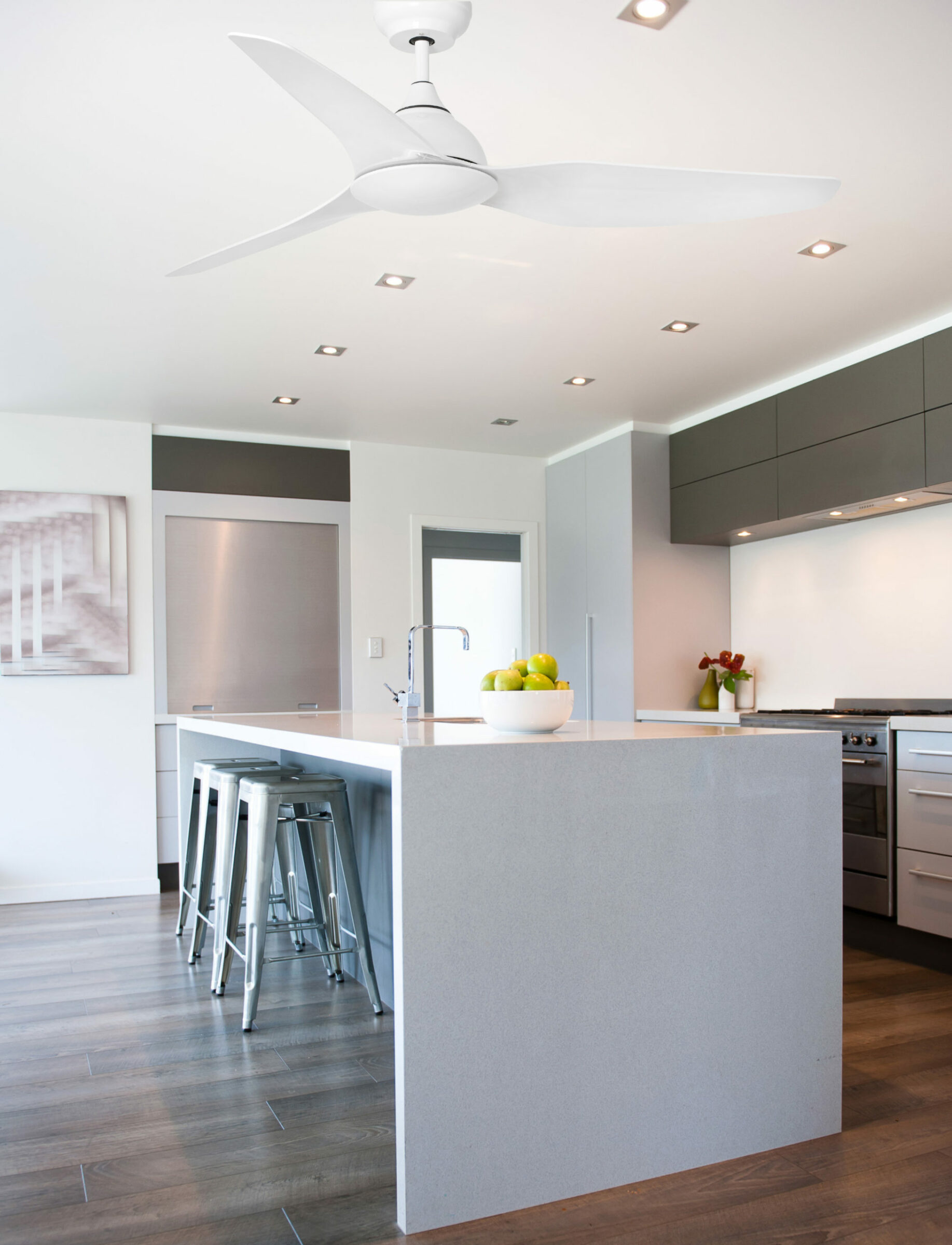Λευκός ανεμιστήρας οροφής με κινητήρα DC κατάλληλος για δωμάτια από 13m2 έως 17,6m2. Λειτουργεί με τηλεχειριστήριο, (περιλαμβάνεται) ρυθμισμένο με 6 ρυθμιζόμενες ταχύτητες 106-143-174-198-233 rpm που αντιστοιχούν στις ακόλουθες καταναλώσεις 5-10-16-23-38W. Αυτός ο ανεμιστήρας οροφής έχει λειτουργία χειμώνα / καλοκαίρι. Περιλαμβάνονται δύο ράβδοι. Ροή αέρα: 164,32 m3 min / 5803 CFM. Ελέγξτε τον ανεμιστήρα σας με το WiZ. Λειτουργεί με WIFI 2,4 GHz και κάνει τις ίδιες λειτουργίες με το τηλεχειριστήριο. Είναι συμβατό με Alexa.