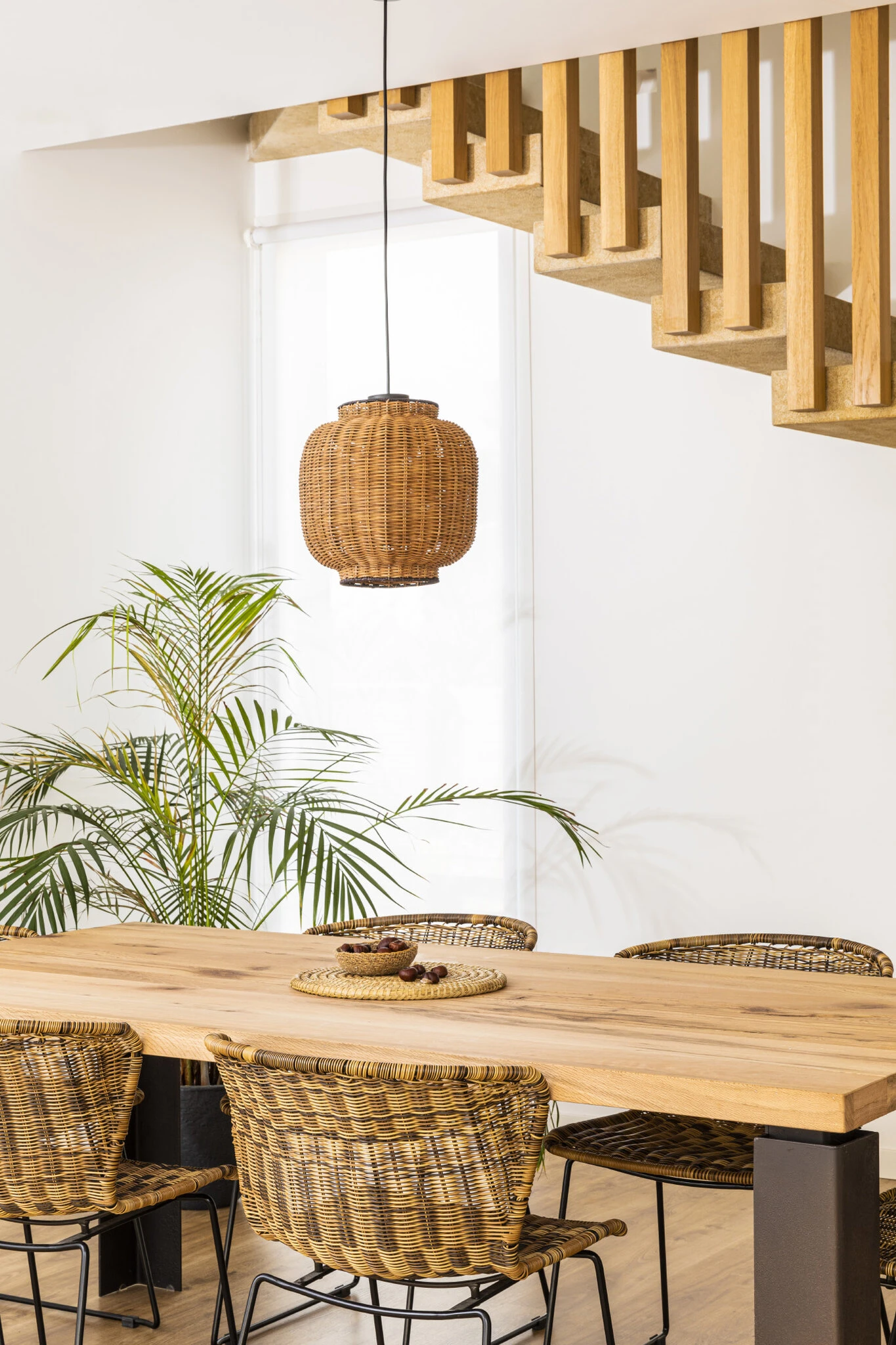 Το TUPAI είναι ένα κρεμαστό φωτιστικό για φωτισμό εσωτερικού χώρου. Το σχήμα του θυμίζει φανάρι ανατολίτικου στυλ. Το φως προβάλλεται μέσα από το ραττάν της σκιάς, δημιουργώντας ένα όμορφο αποτέλεσμα. Είναι ιδανικό για να φωτίζει υπνοδωμάτια και σαλόνια.